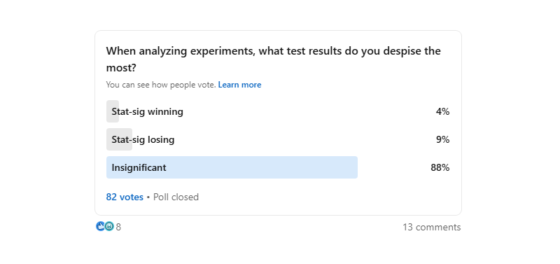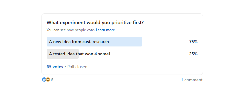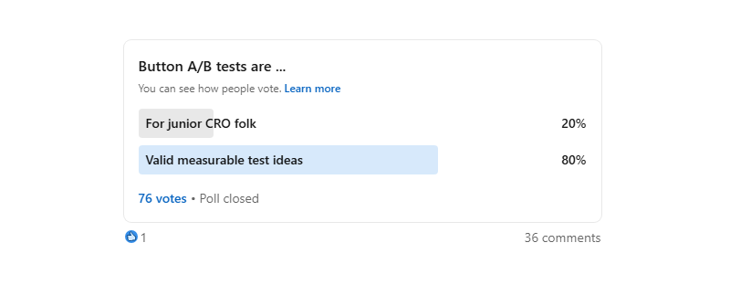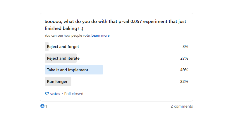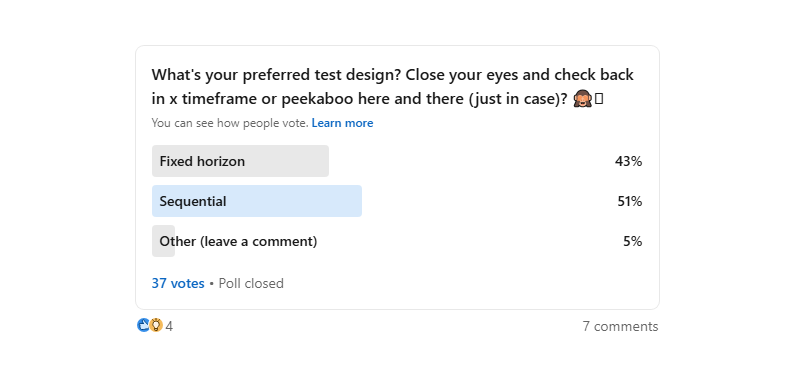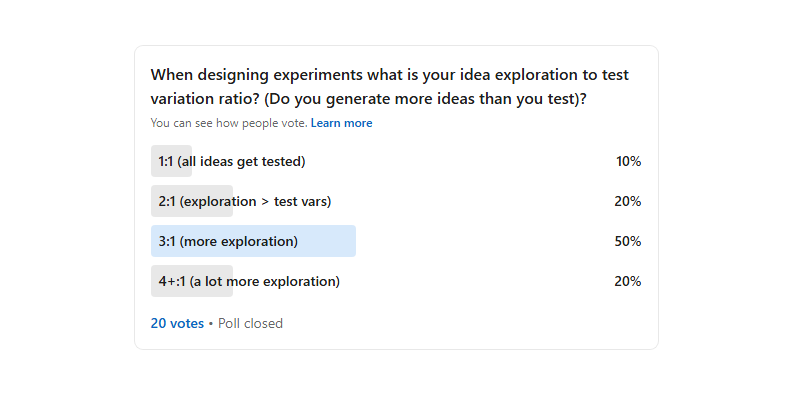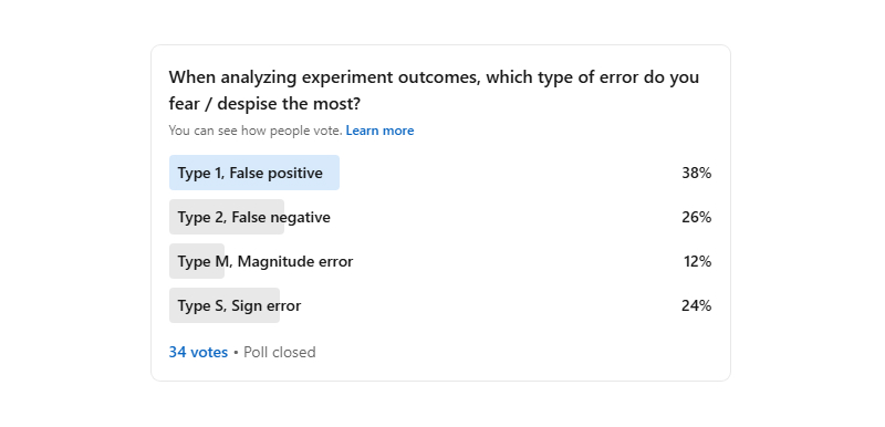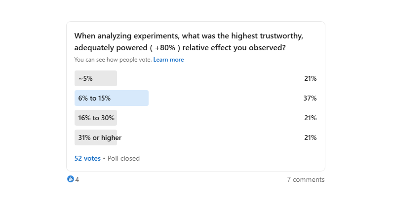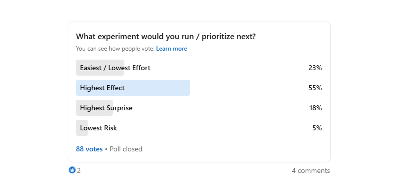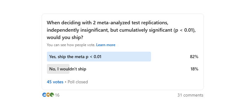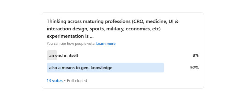 Over the last two years, I’ve run more than 40 LinkedIn polls on topics related to experiment design. The goal was to test, challenge, and refine common beliefs—and to engage more experienced practitioners in open discussion.