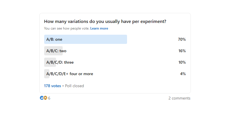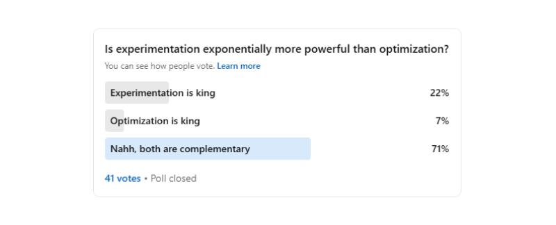While no poll is perfect and many answers deserve nuance, I hope these results serve as useful starting points for deeper investigation. The respondents came from a mix of backgrounds, including in-house experimentation teams, platform builders, and agency practitioners.
