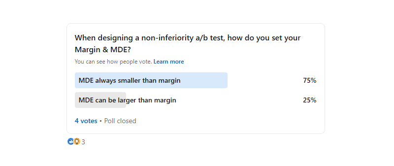 Poll 04: When designing a non-inferiority test can the MDE be larger than the margin?