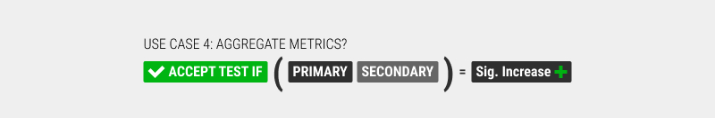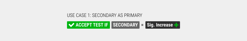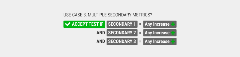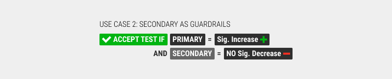 Moving on, perhaps a second use case for secondary metrics might include setting them as simple guardrails. That is, our traditional primary metrics stay as such but additional ones are also tracked. These guardrails are then factored into our acceptance criteria. For example: we'll only accept the test if our primary metric is satisfied while additional secondary ones that do not deteriorate (or meet some predefined conditions).