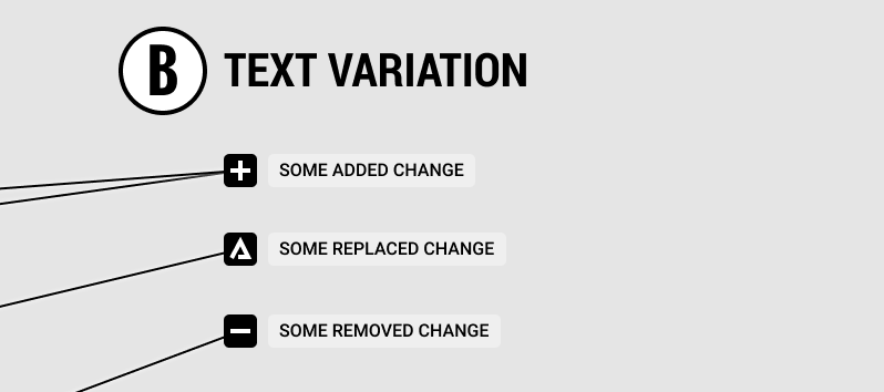 Not every change needs to be designed in detail. I've seen countless experiment ideas (ex: copy changes) expressed as simple text. For this reason, Canvas now supports different types of text based changes. These are essentially simple text annotations on top of an existing screenshot to help team members understand your proposed change.