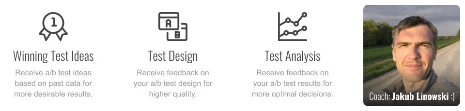 With coaching as two calls per month I guide experimentation teams while increasing your odds of winning experiments.