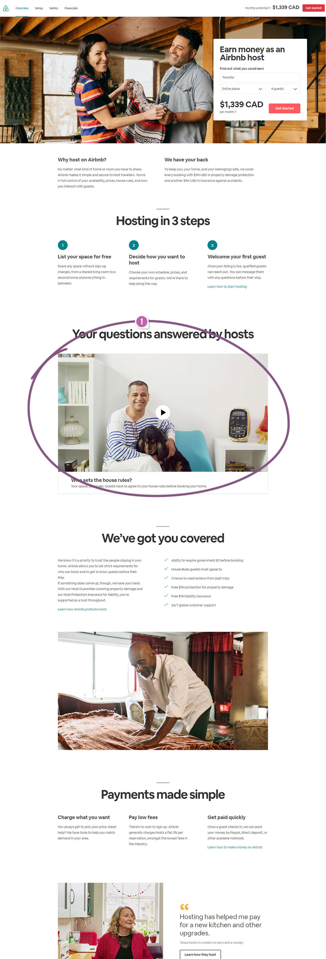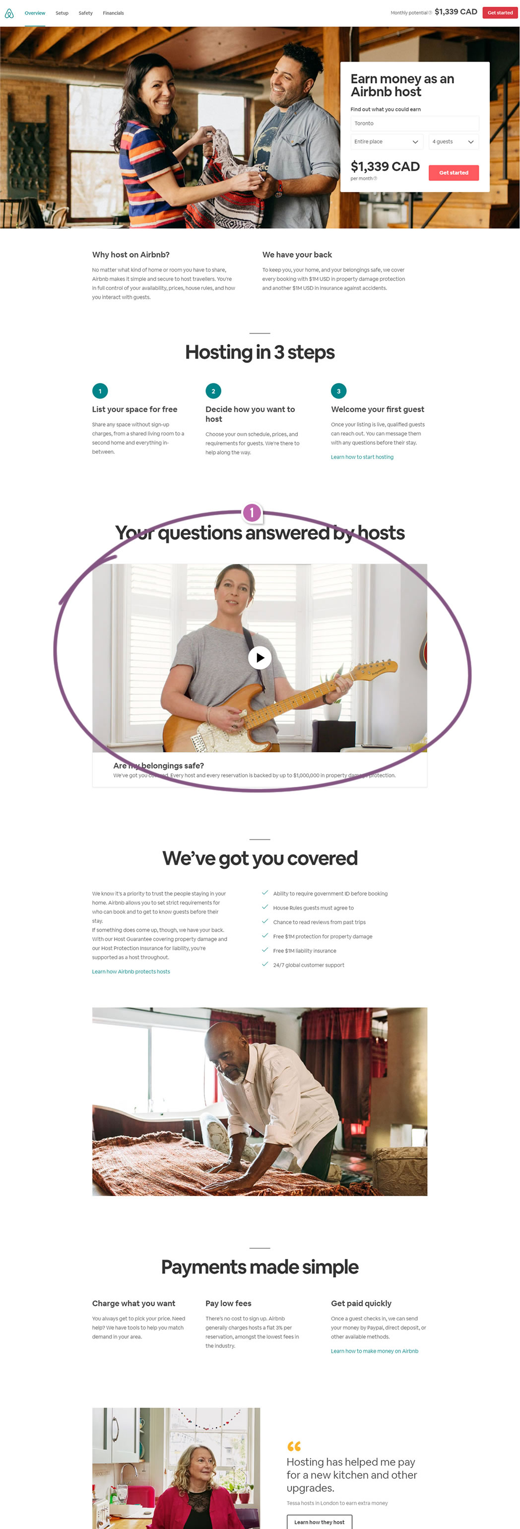 Videos are usually considered a popular growth tactic that people believe will improve conversion or signup rates. Hence I find it really interesting that Airbnb A/B tested a series of videos on their host signup landing page and then rejected them altogether. So why where these video removed?