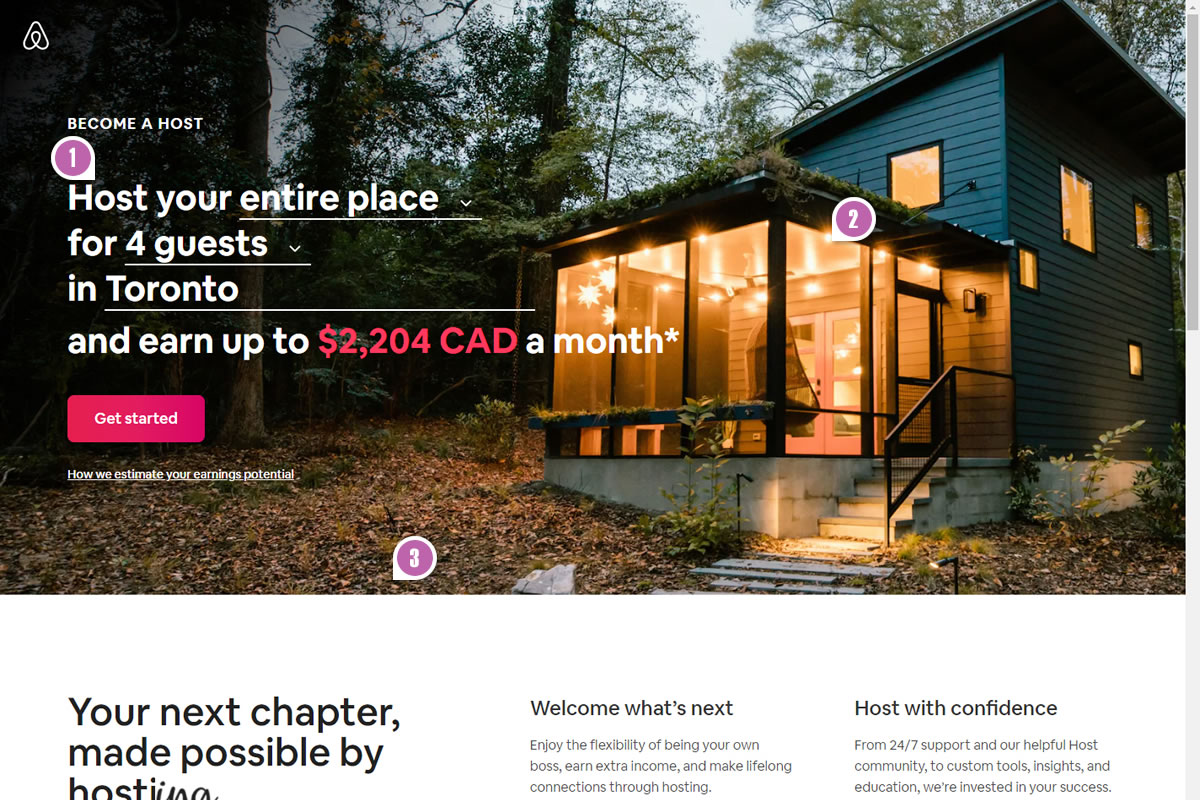 Airbnb just completed an interesting experiment on their Become A Host landing page. They replaced a simple headline with a more dynamic natural language form that provided a sense of how much money someone could make from hosting their place. The variation applied a Natural Langauge Form with three form inputs that would then update the total dollar amount based on what was entered into the form fields. Unfortunatelly it looks like the tested variation was eventually rejected.