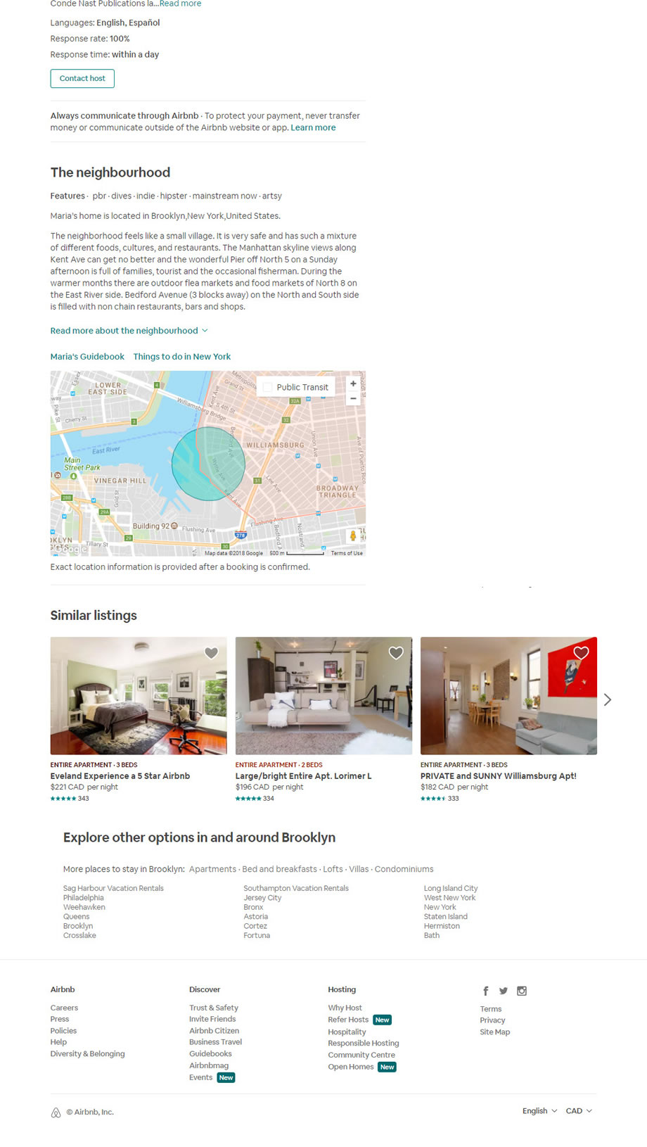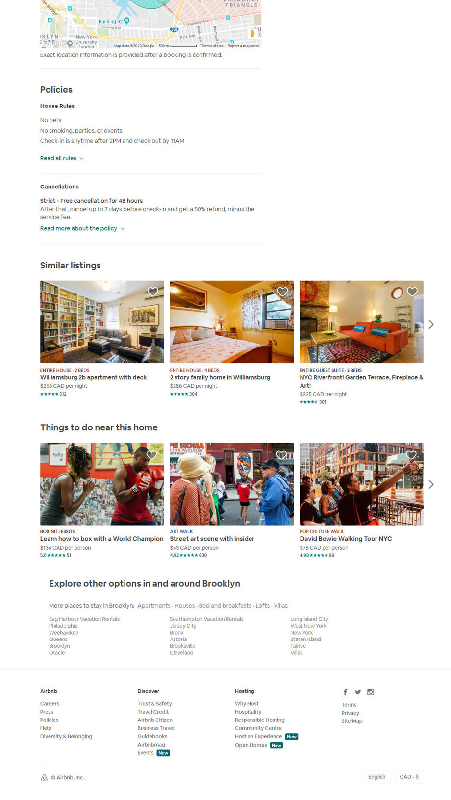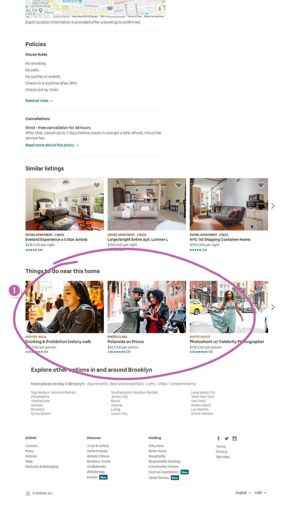 One key change in this leak was the introduction of the additional row of thumbnail images under the "Things to do near this home" category at the bottom of the footer. I'm speculating that these extra sets of "Airbnb experiences" may provide customers with additional reasons to book a property or possible another revenue stream. Although we're not sure if this was a/b tested or simply implemented as a business decision, this design decision still provides subtle evidence worthy of remembering.