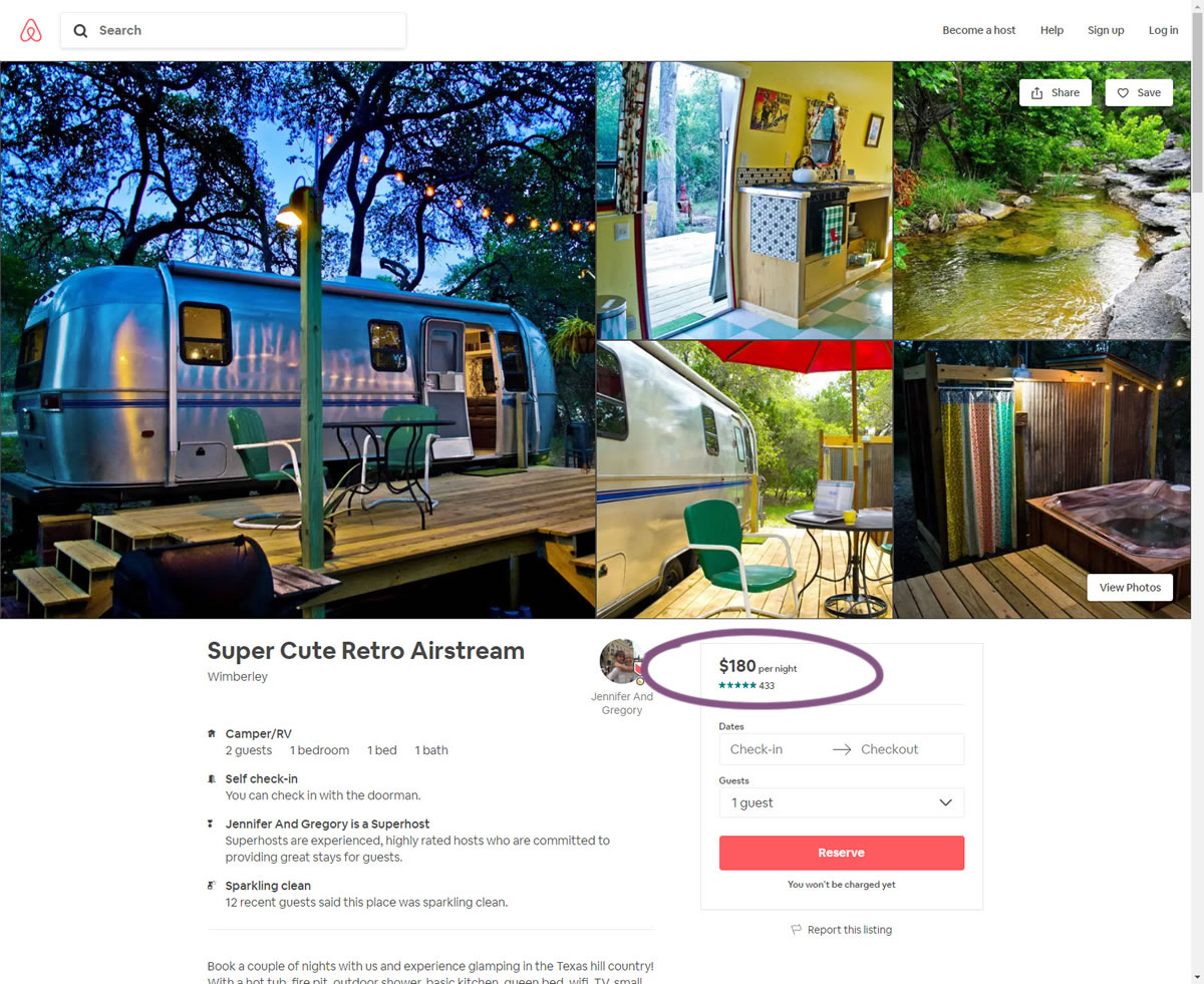 In the control (A) version we can see that Airbnb has used a full set of 5 stars to denote the average rating. By looking at older screenshots of other property pages, we also can tell that these 5 stars did convey the average amount visually by using a combination of darker green stars vs lighter gray ones. In contrast, the B variation uses a numerical representation to show the averages with one or two decimal places - and this version has been rolled out.