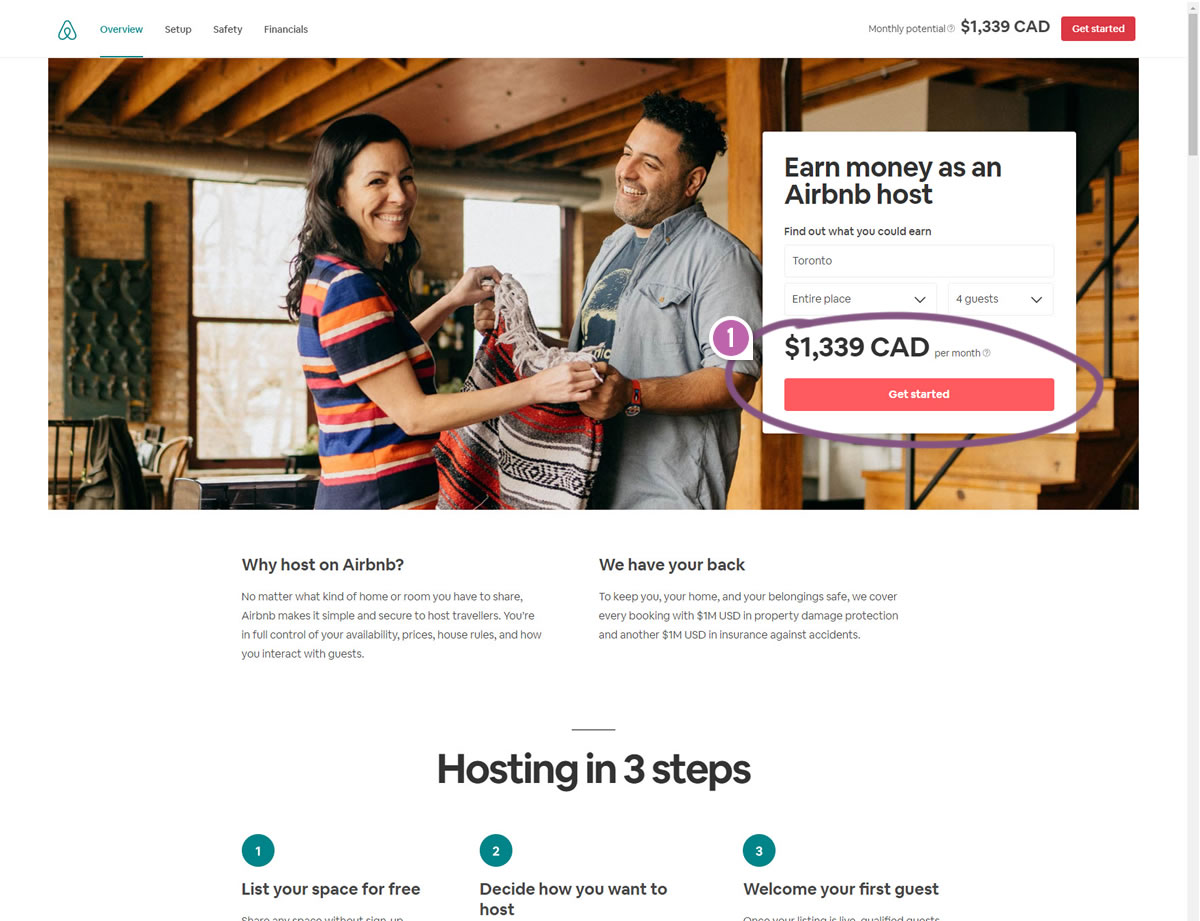 Here is a perfectly simple optimization of a "Get started" button on Airbnb's host signup landing page. Airbnb ran an experiment of a smaller vs larger button size. I know because I managed to capture two diverse screenshots with the same date stamp. :) More so, a few months later Airbnb rolled out the later button to 100% of their traffic - hinting at a successful experiment outcome.