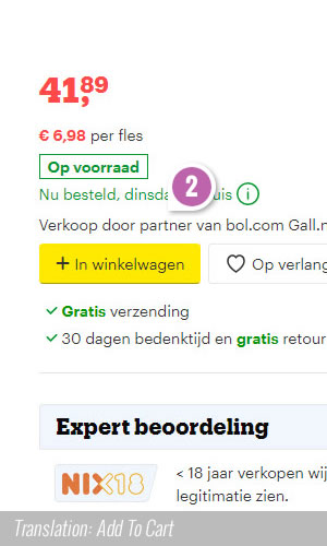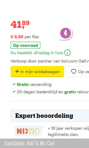 Bol, a leading online retailer in the Netherlands, just completed a beautiful experiment with 8 add-to-cart button variations. Two potentially leading variations (C & G) were then retested in a followup A/B test. Today, we have finally detected that the C version ("In winkelwagen" translated to "Add to cart") has been implemented on all product pages. Here are my comments about some of these variations.