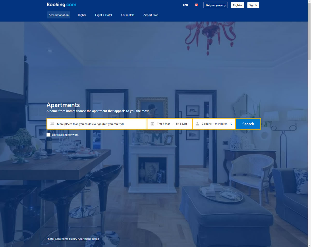 This leaked experiment captures a very simple and isolated change on Booking's apartment landing page. The tested change was the automatic exposure of the calendar menu instead of keeping it collapsed (requiring an extra click to open the date picker). A few weeks later, the experiment was observed to have been completed with the exposed calendar version (B) as implemented.