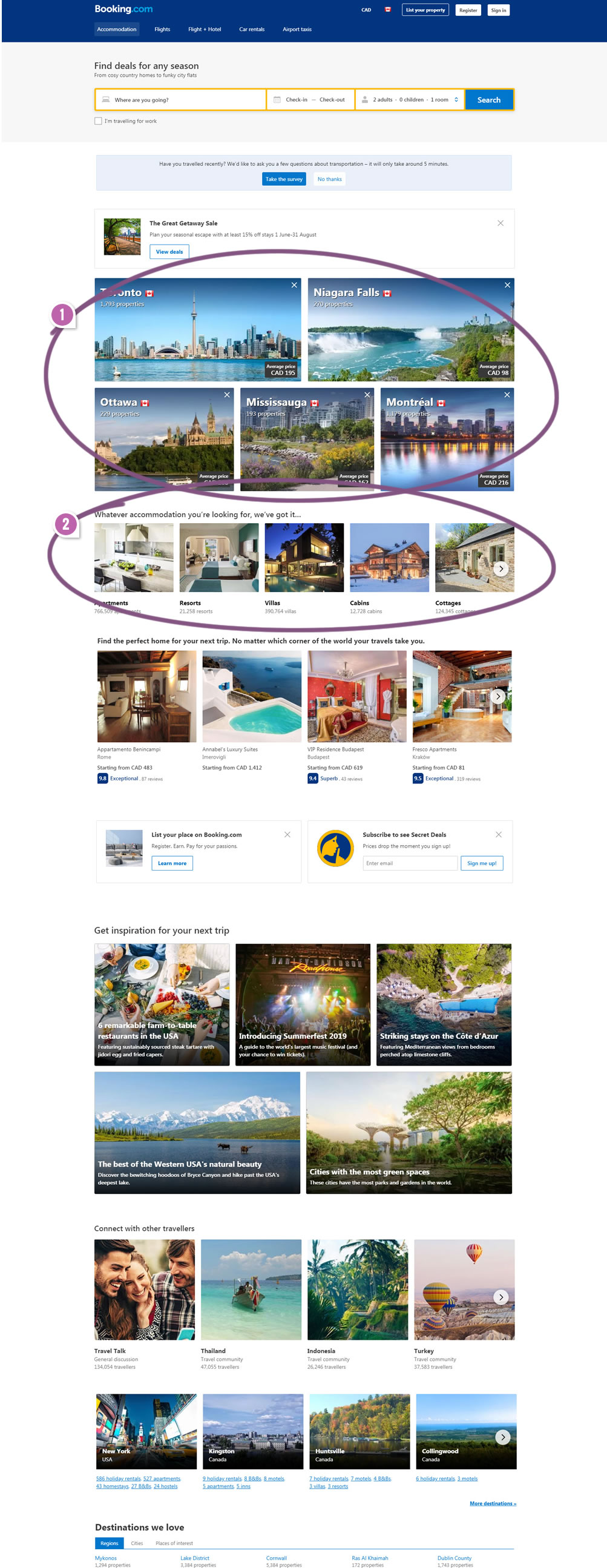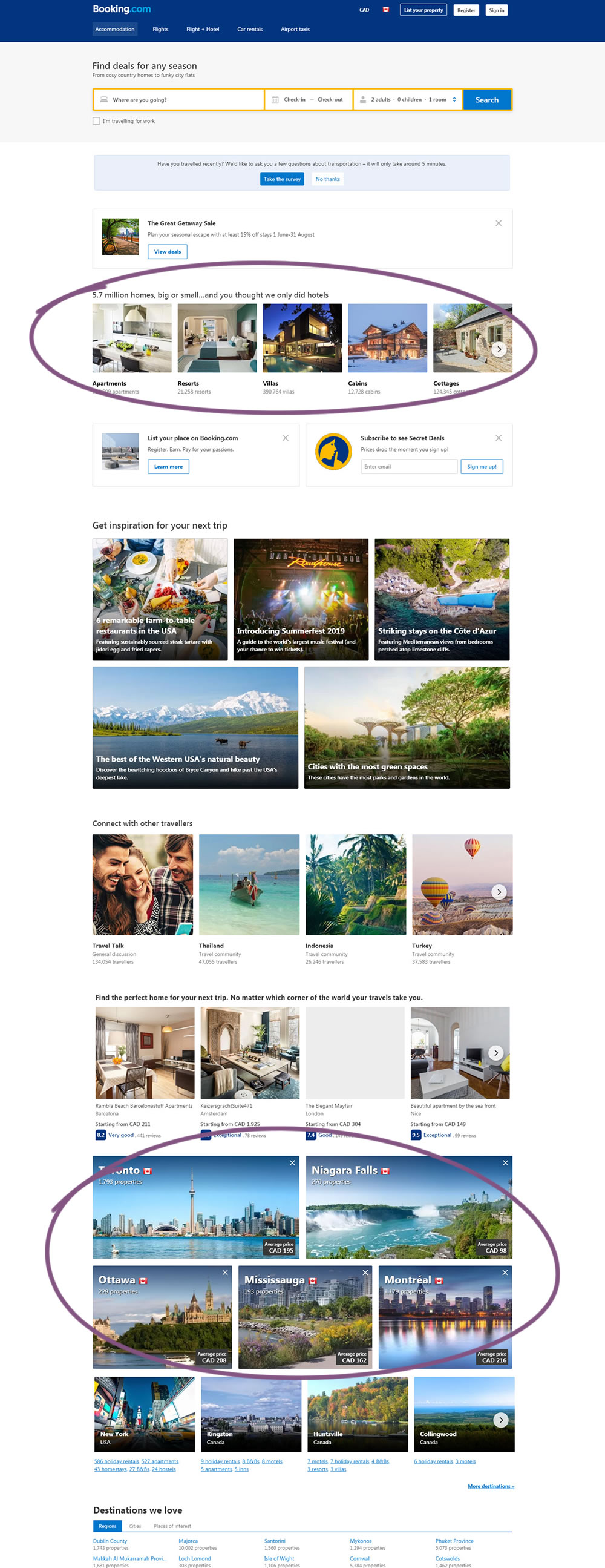 It looks strange to proritize Canadian cities on a Canadian website during the summer vacation season. It can be hypothesized that they experienced a drop in local bookings and the boss responsible for Canadian reservations tried to improve the situation...
