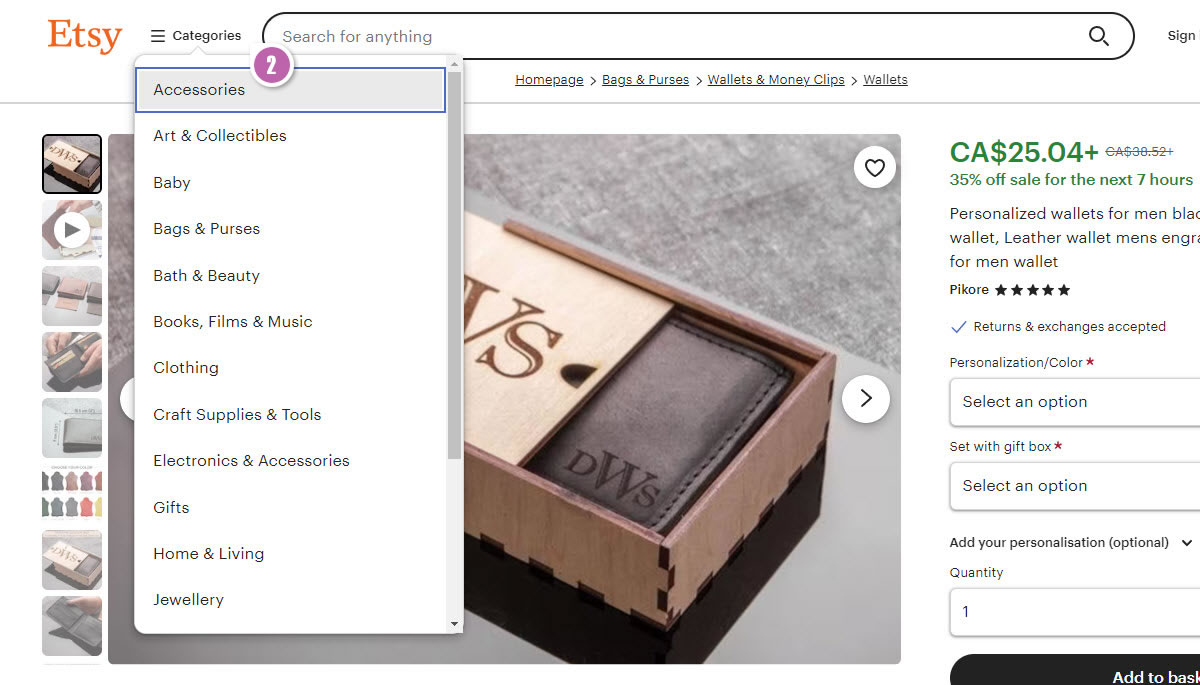 Etsy A/B/C tested at least 2 variations of their navigation, placing traditional category links against fly-out categories and breadcrumbs. The B variation with both the fly-out categories and breadcrumbs seems to have been rolled out eventually (and further iterated on in 2024).