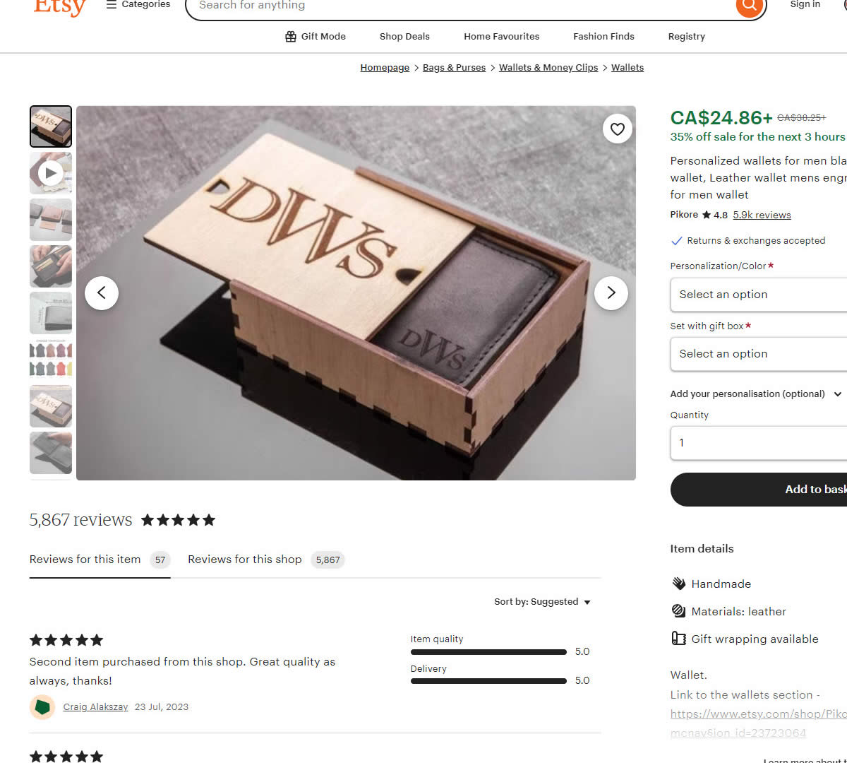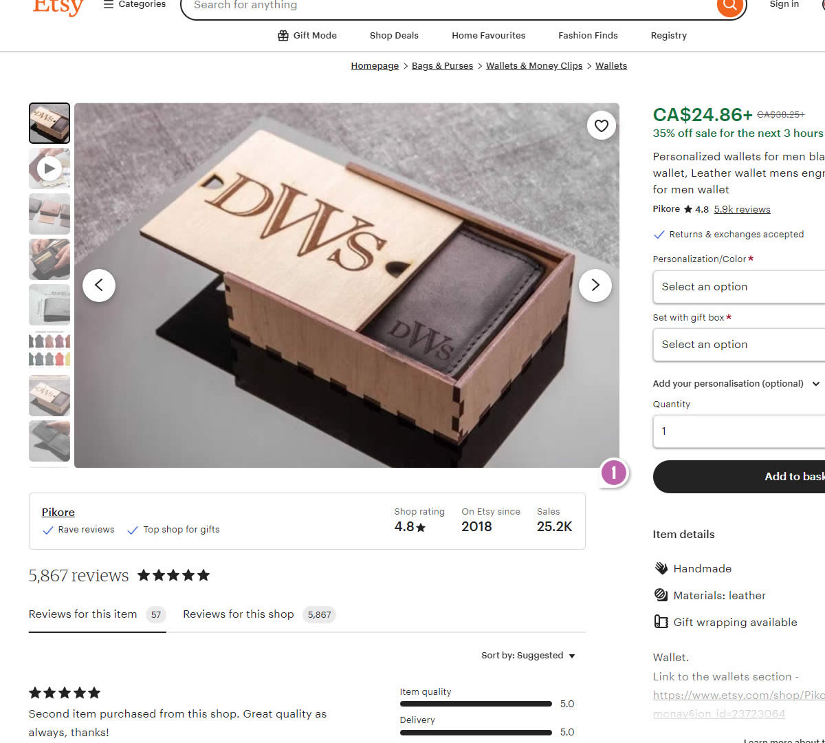 Whereas Airbnb has a link under the review count that links to a modal and keeps customers on the page; Etsy attached a link to the store name (Pikore) which may have taken customers away to other products.