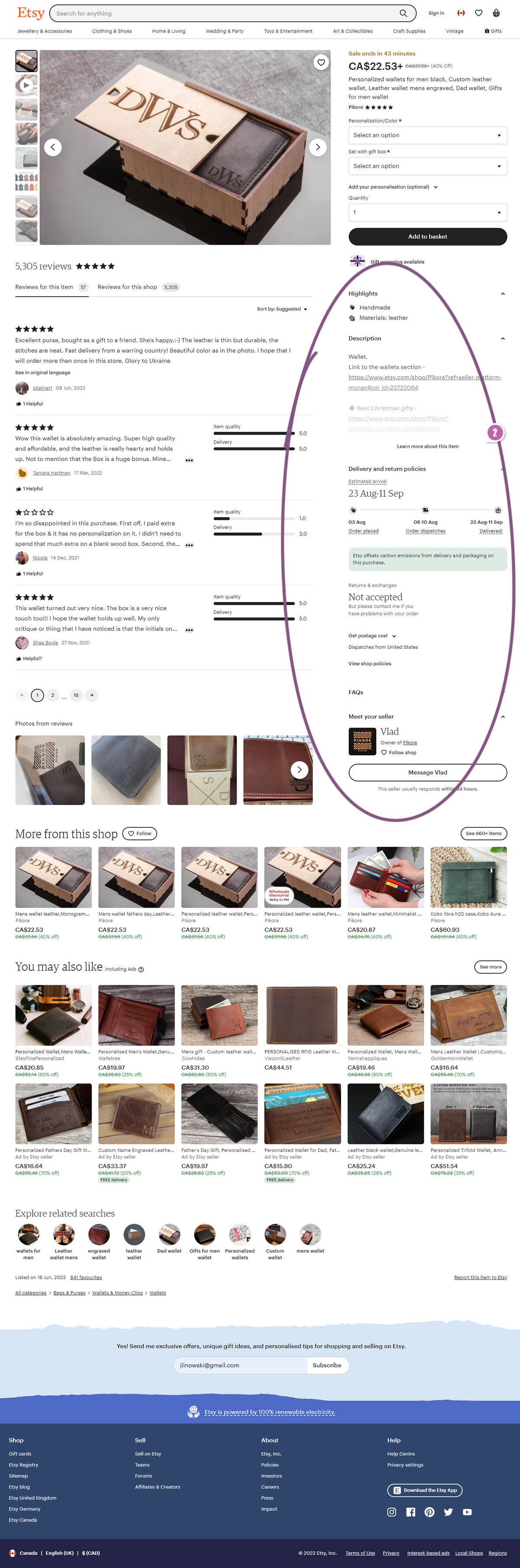 Previously, we have observed that Amazon implemented a variation with additional product details higher up on their page. We also published many positive experiments that communicate to users how soon they may receive a product. In Etsy's case this type of information was de-emphasized as it was pushed downwards.