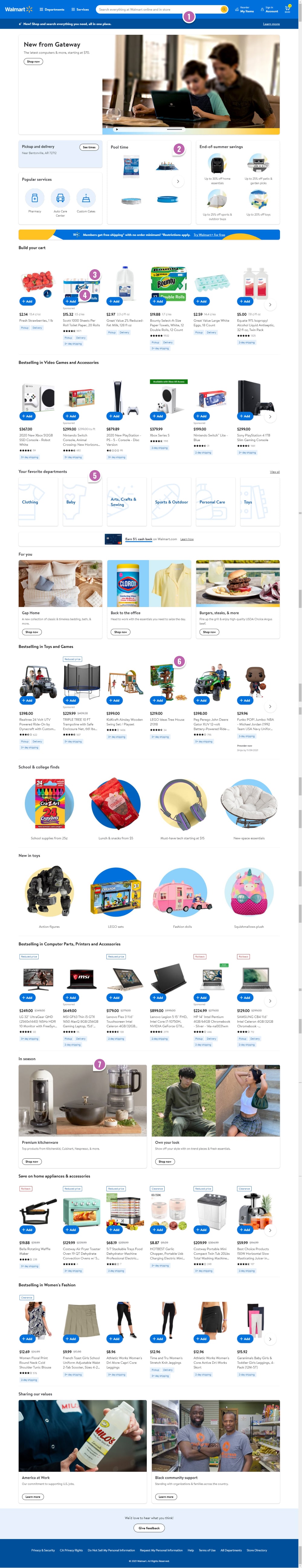 Walmart a/b tested a new version of their homepage which I managed to capture screenshots of. Generally speaking, the new variation is basically longer with more types of products, more results, and a greater distinction between products and categories. After waiting a few weeks, we can also confirm that the new version was implemented - suggesting a possible improvement. And so I thought it might be fun to break down some of these changes and connect them to some of our patterns. Aside of this, I also turned the winning variation into an editable Figma wireframe template (as a free download) in case anyone wishes to use it as a starting point for further design exploration.