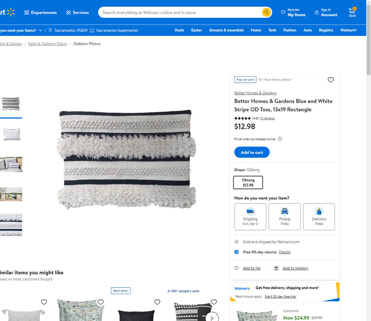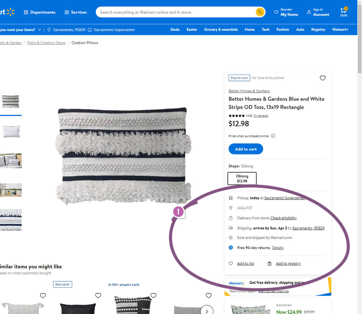 Walmart recently ran an a/b test on their product detail pages that showed shipping information in two different styles. On one hand (here shown as A) shipping options were shown as a button choice. Whereas in the variation, all shipping information was fully expanded and readable bullets. Almost two months later, it looks like the A version was rejected - a possible piece of light evidence in favor of the bulleted reassurances pattern.