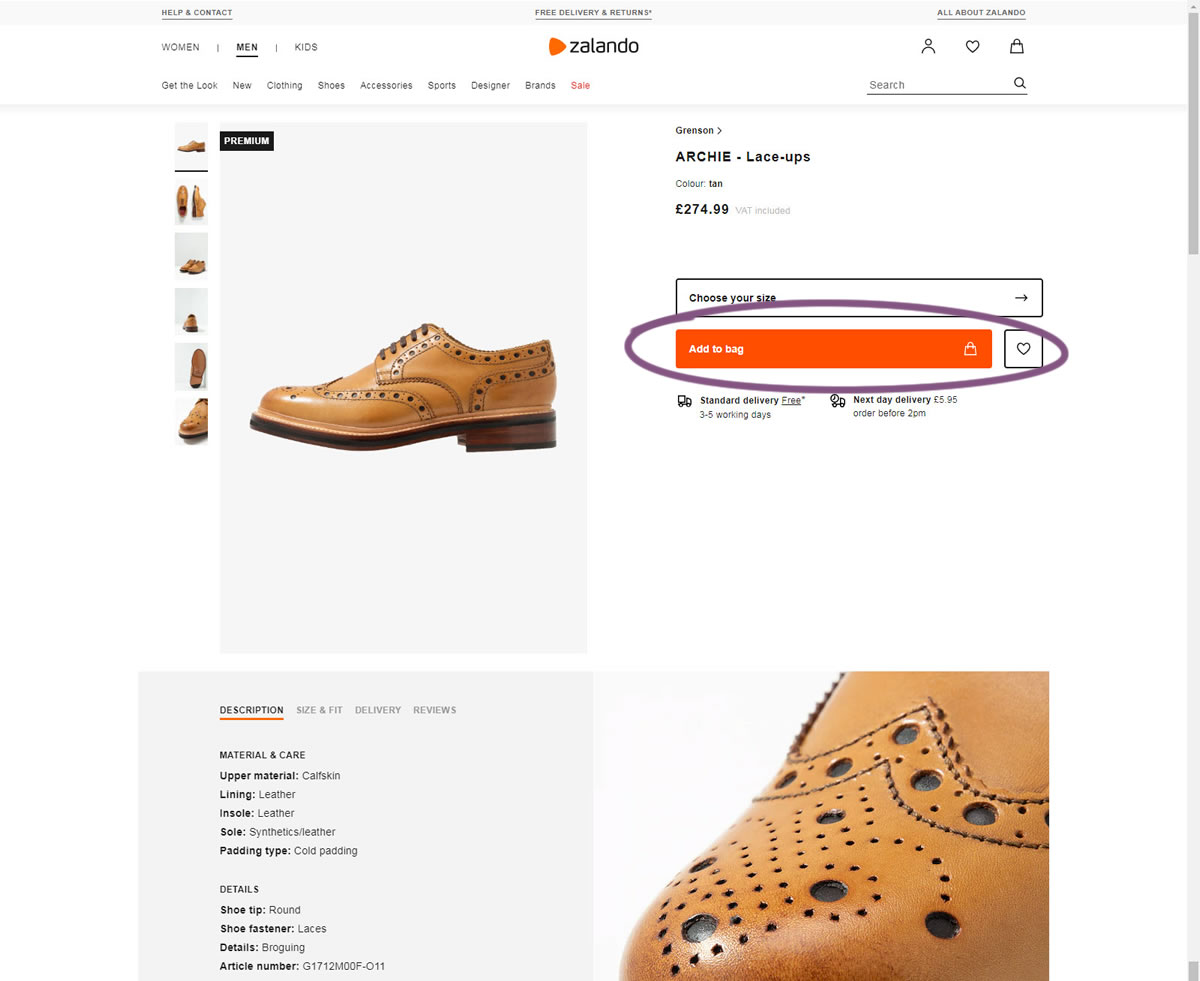 Zalando has run a simple experiment on their product page where they challenged their existing orange add-to-cart button against a black one. One month later, the black button was rejected even though the black one had a higher contrast ratio.