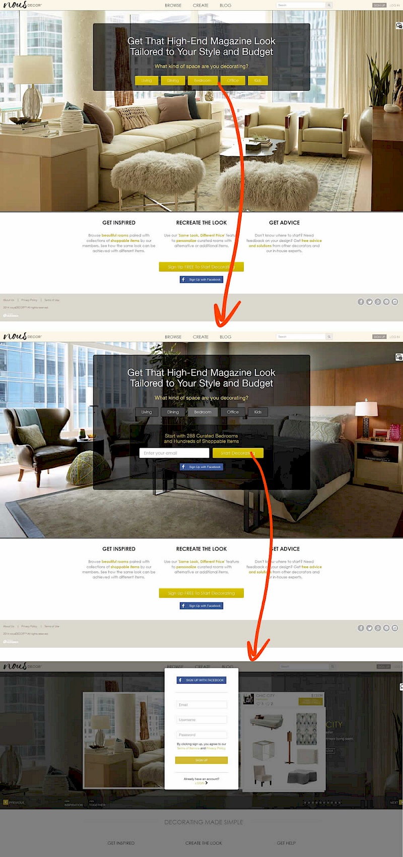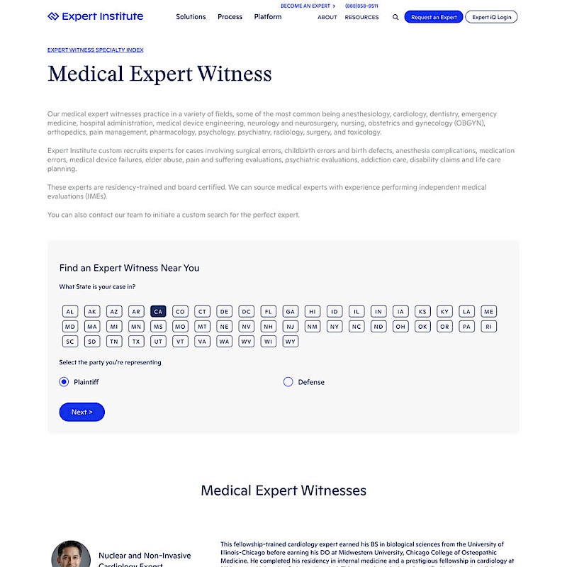 In this experiment, the variation broke up a lead form into two parts. In the first step users were asked for their state followed by a standard contact form on a second step. All of the states were shown as selectable options. In the control version, the landing page only showed a button which lead to the full form. The experiment measured impact on lead form submissions.