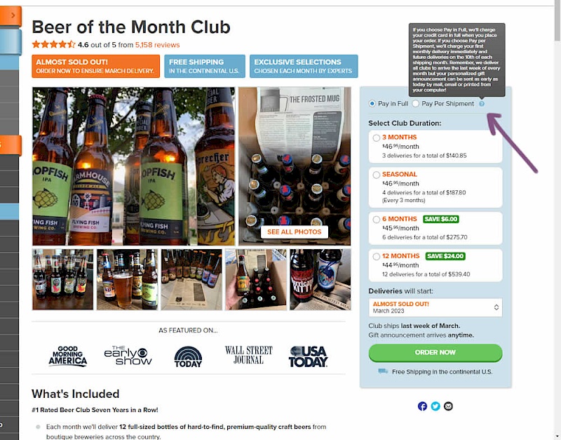 In this product detail page experiment, the variation showed a tooltip icon. Upon hovering on the icon it expanded additional information explaining the difference between pay in full and pay per shipment. Impact on sales was measured.