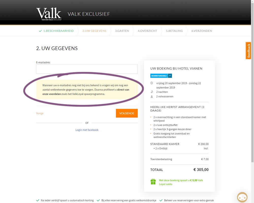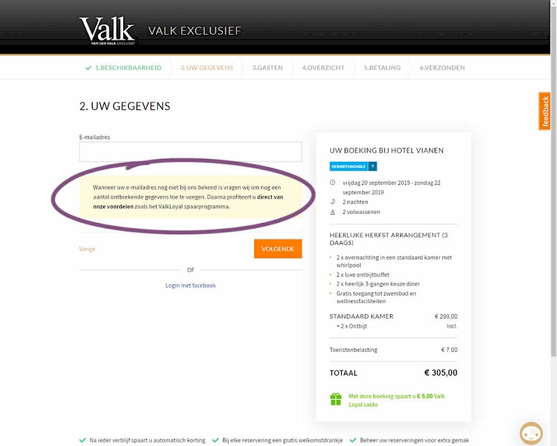 In this experiment on Valk Exclusief's web site, a reason was provided for why the e-mail address is being collected. Google translation of the added text is as follows: "If your e-mail address is not yet known to us, we will ask you to add some missing information. Then you immediately benefit from our benefits such as the ValkLoyal savings program."
