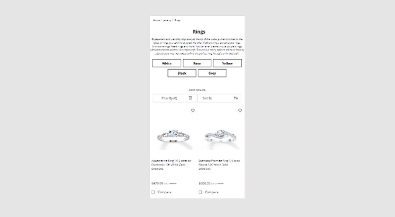 In this experiment, two types of UI filters for metal color choices were shown at the top of product listing pages. One variant only used category labels, while the other variant combined images with labels to reinforce the categories. Impact on filter usage, adds to cart and sales were measured.