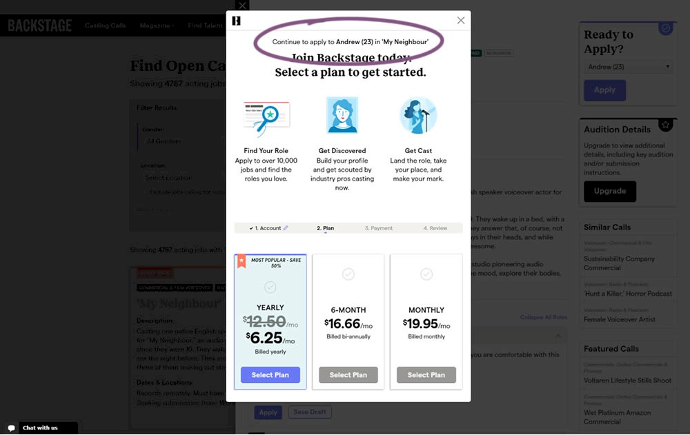 In this experiment, a confiming text was added at the top of a signup modal. The text reinforced the selection from a previous listing page, giving a good reason for continuing the signup process.