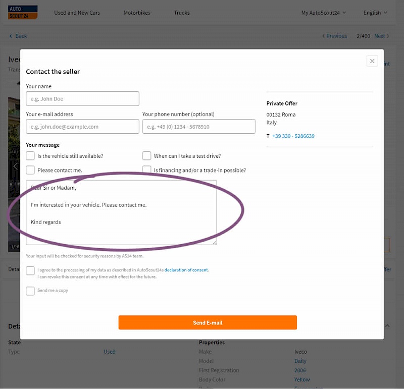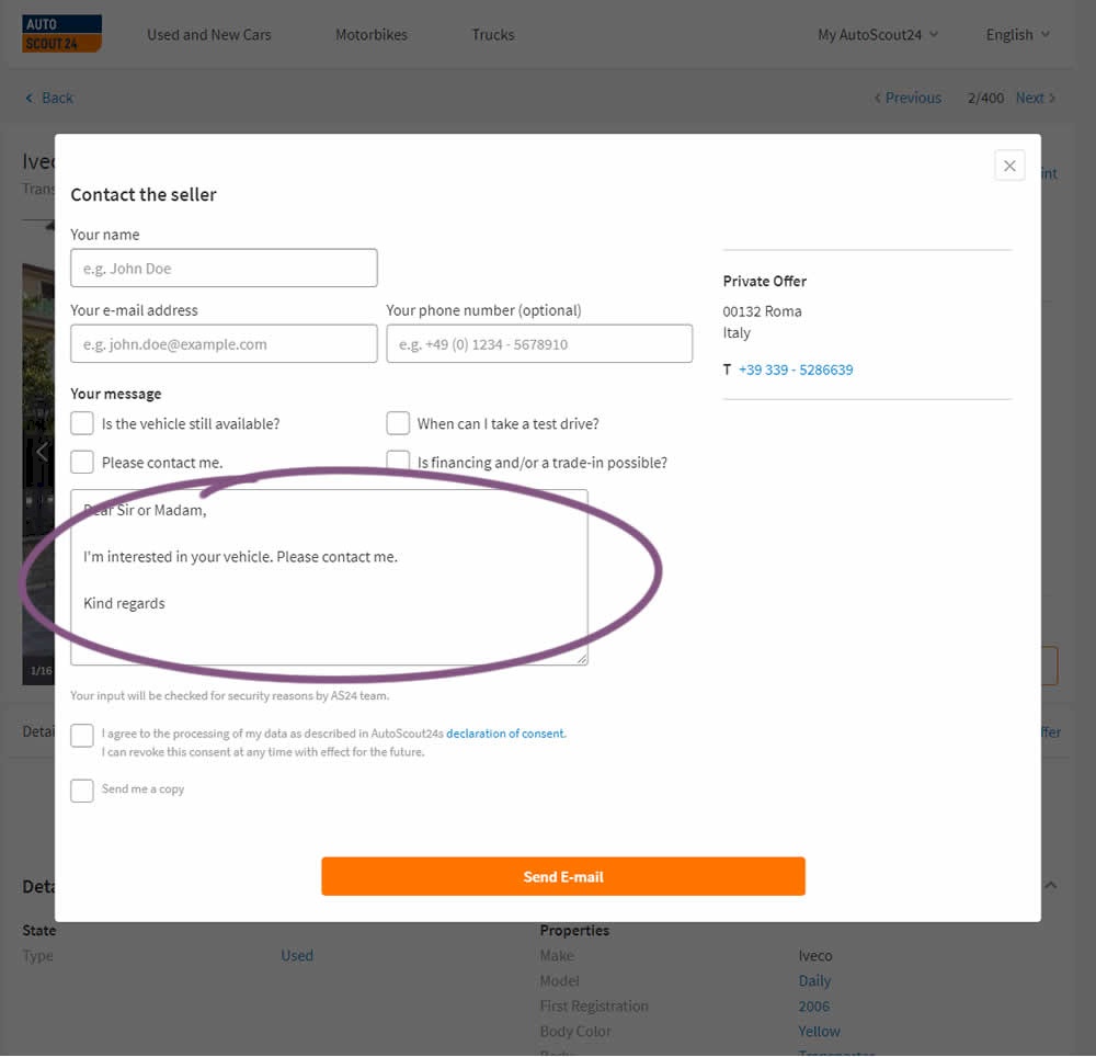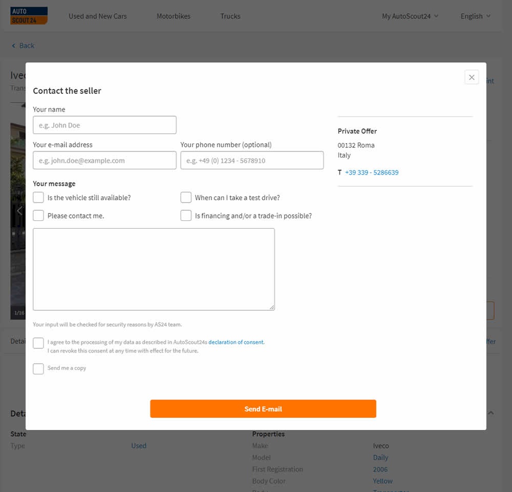 AutoScout24 is Europe’s largest online marketplace for new and used cars. As published by Optimizely, they tested a form pre-filled with text that read: ‘Hello. I am interested in your vehicle. Please contact me. Kind regards.’