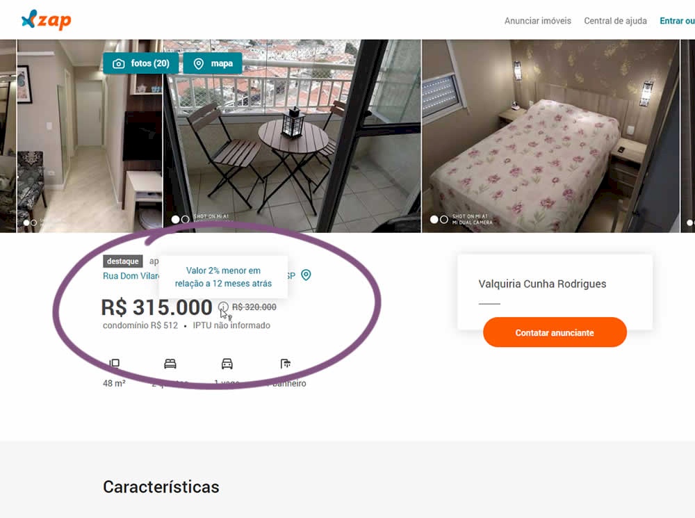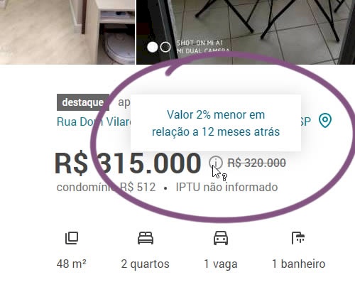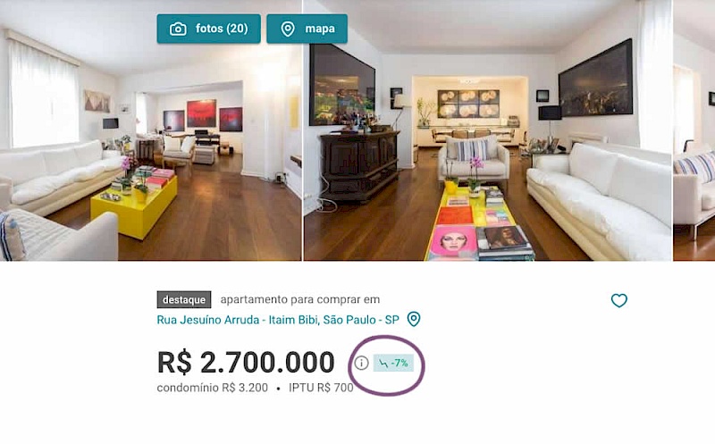 In this experiment, the B variation property prices were framed using higher and crossed out price points from 12 months ago - achieving a relative discount. A tooltip was also shown which explained the higher price point on hover. The example in the screenshot translates to "2% less compared to 12 months ago". This high-power experiment measured the number of leads that were generated on property (product) screens.
