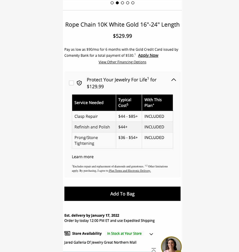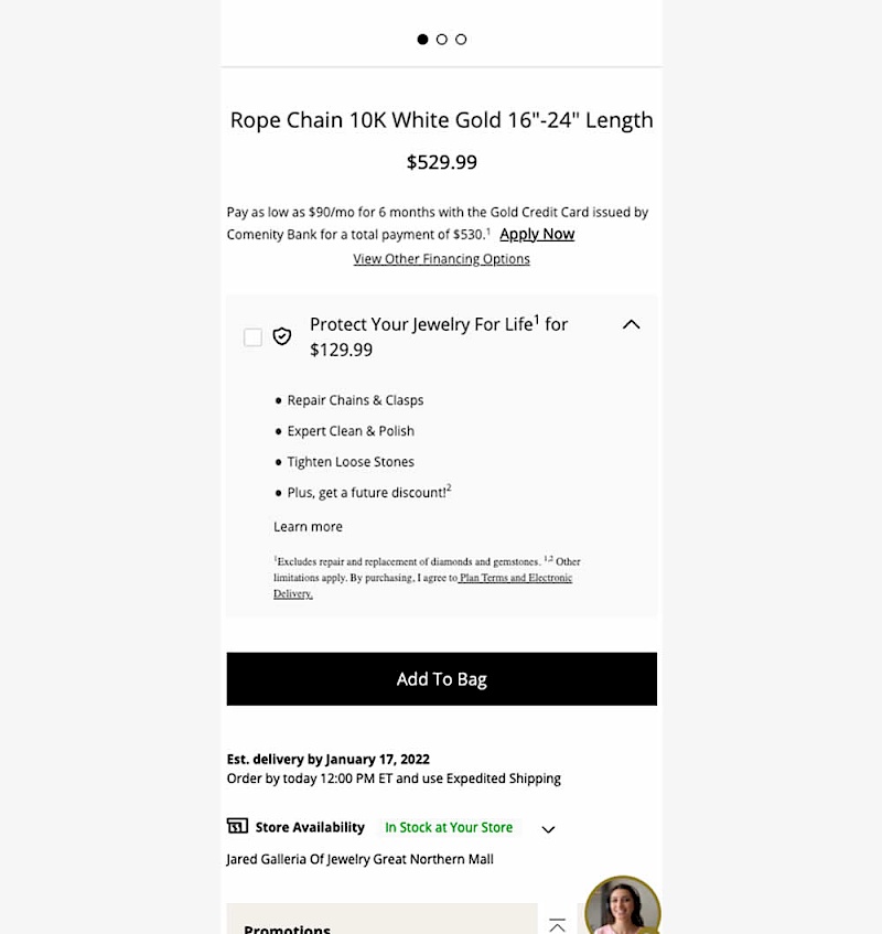 In this experiment, typical dollar values of typical coverages for an extended protection plan were shown. This ran on a product page of a jewelery site. Impact on on adds to cart, sales and uptake of the upsell was measured. Traffic split was 25/75.