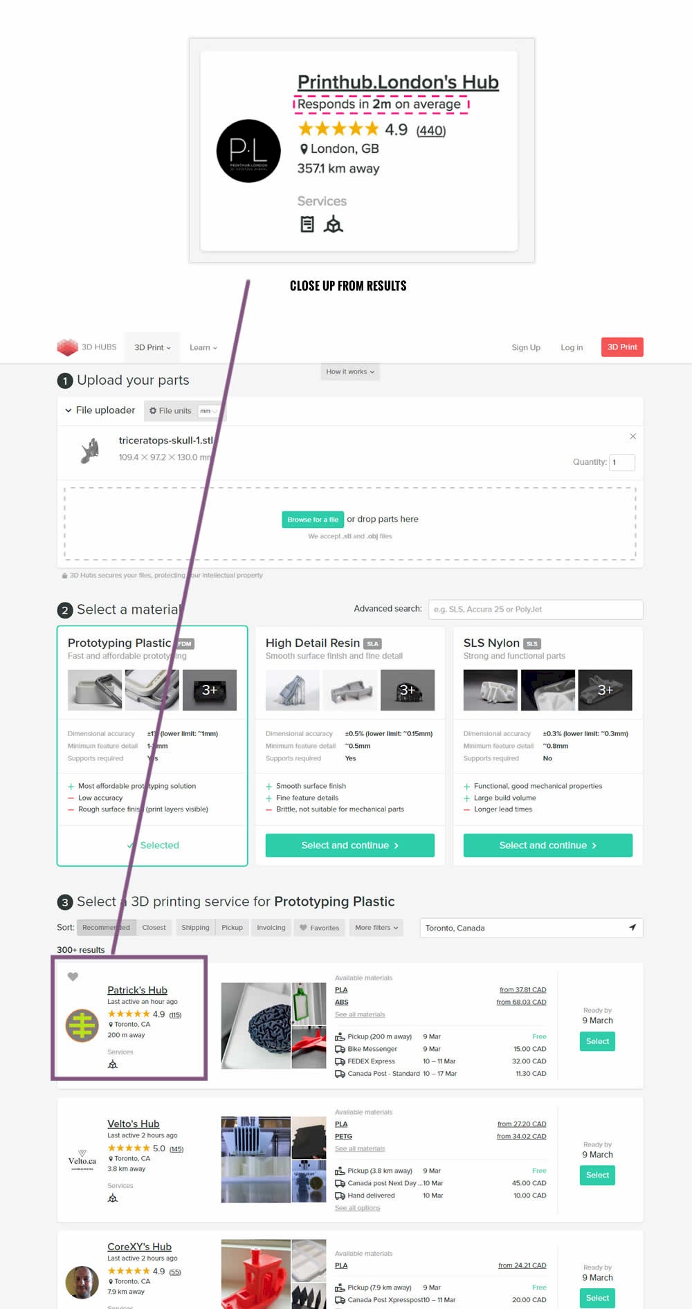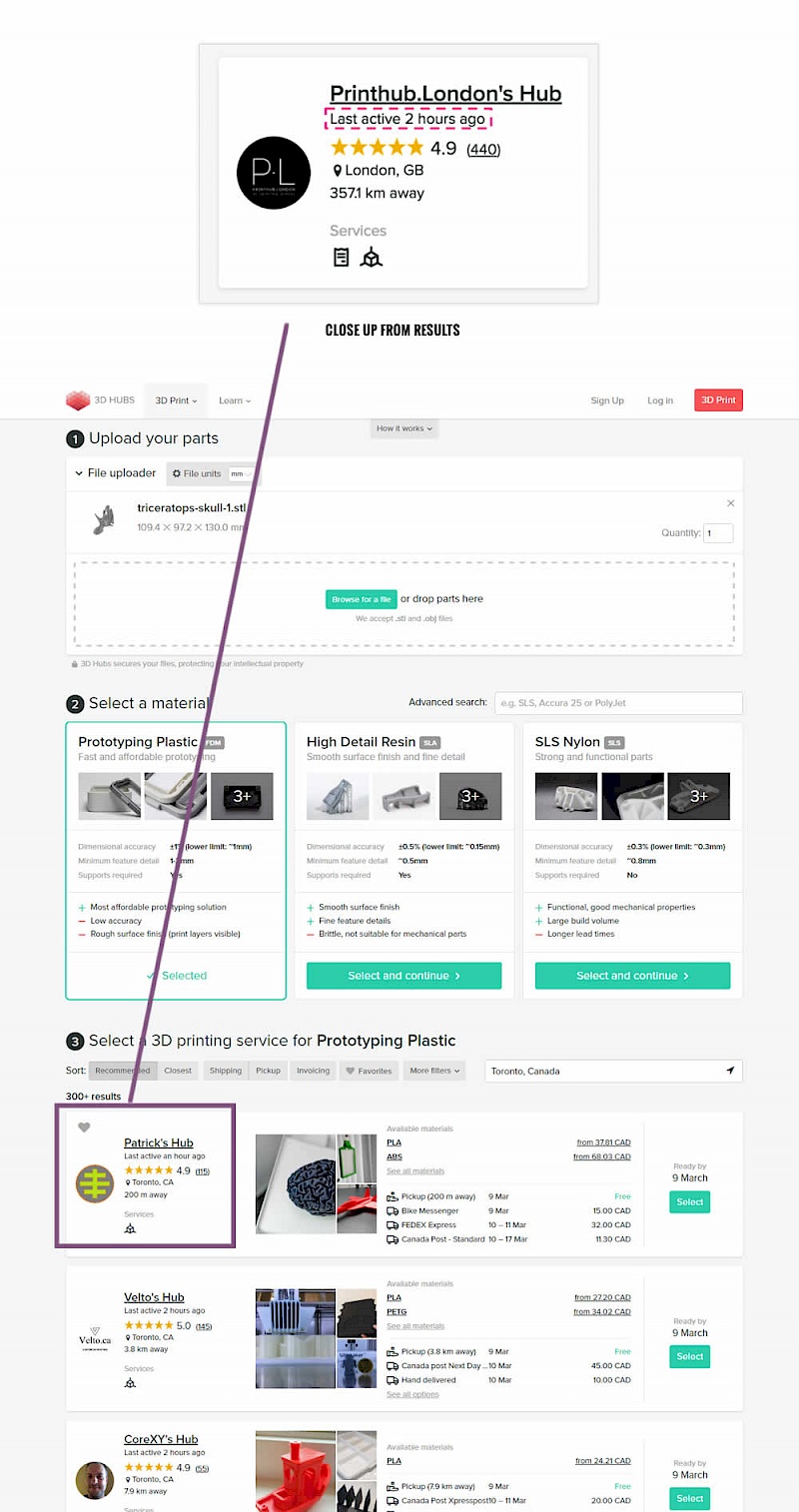 In this experiment, the variation showed a listing's owner online status as a badge, instead of showing their average "response time". More specifically, an "Online Now" badge was shown beside individual listings of a 3D printing marketplace site. The experiment measured completed quote / lead requests (a few steps further).
