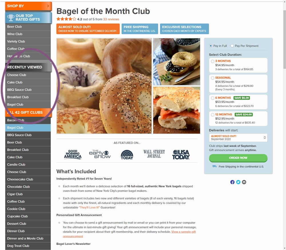 In this experiment, up to 5 recently viewed product pages would appear on the left hand navigation. The idea was to make it easier for users get back to what they were looking at in case they were browsing. These recently viewed products were not visibile in the control. Impact on adds-to-cart and completed transactions was measured.