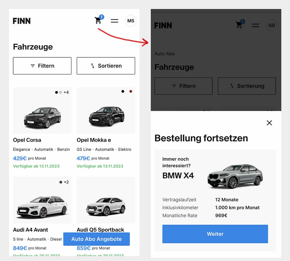 This experiment was triggered by a small segment of users who completed the first step of checkout funnel (submitted email, name, phone number), but dropped from checkout and returned to cars catalogue 7 or more minutes later.