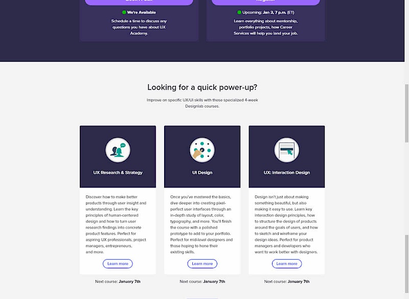 Does linking to a product detail page help? Or should a homepage simply focus on generic lead generation? In this homepage experiment, the presence of a component with a link to a detailed course landing page was tested. Impact on course enrollments was measured.