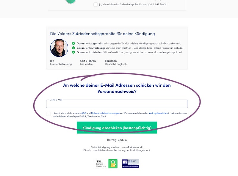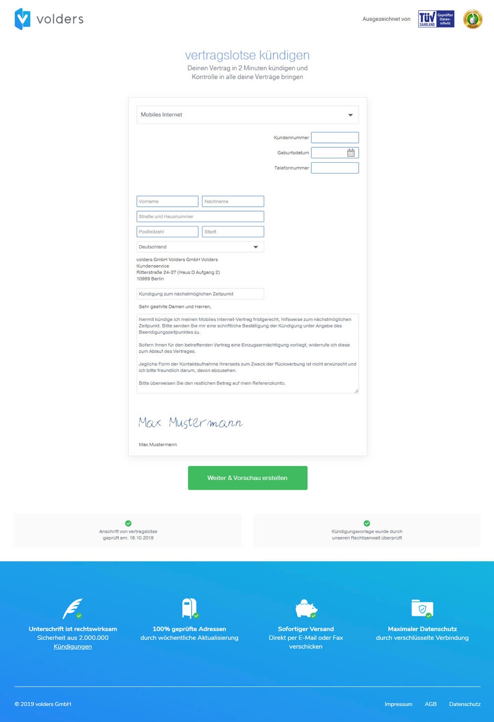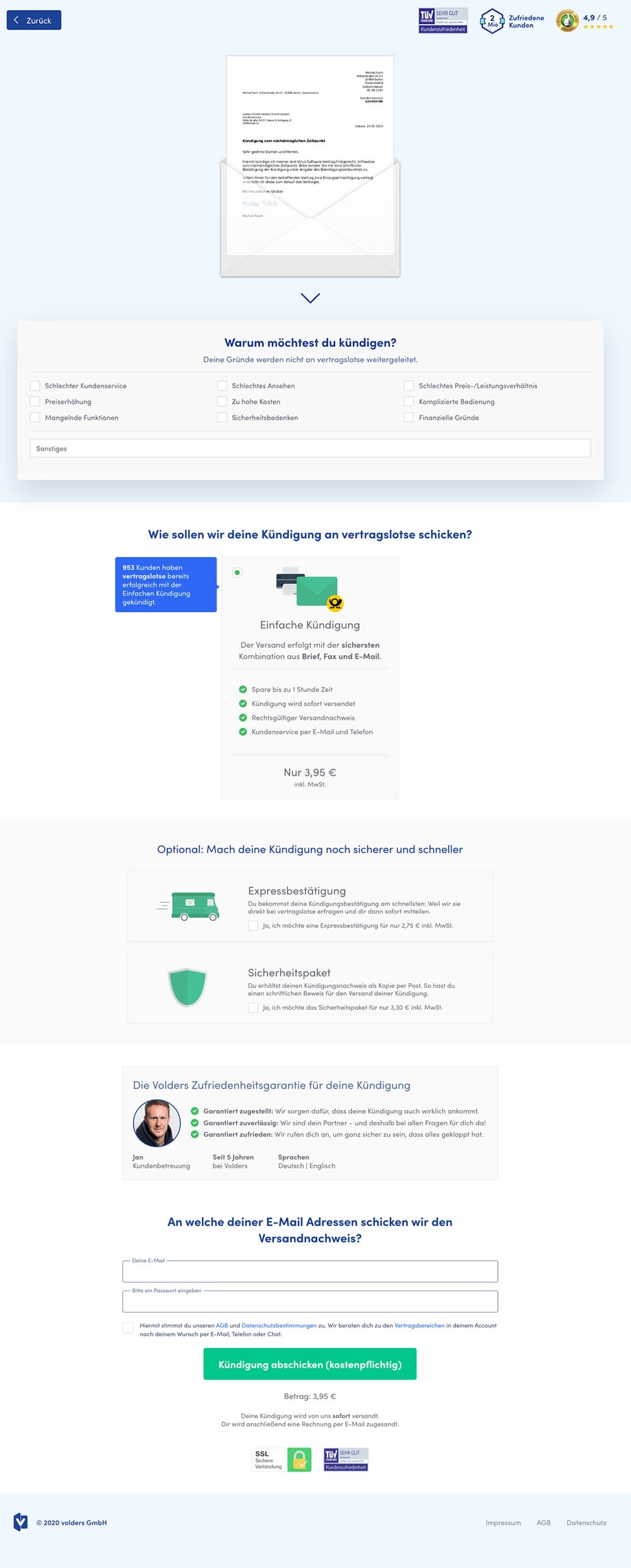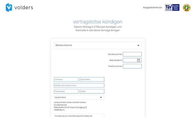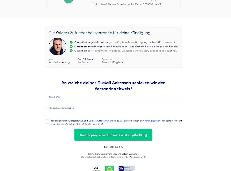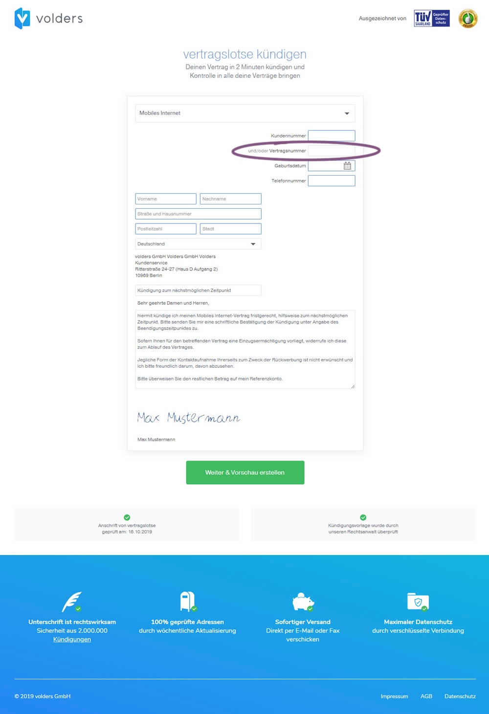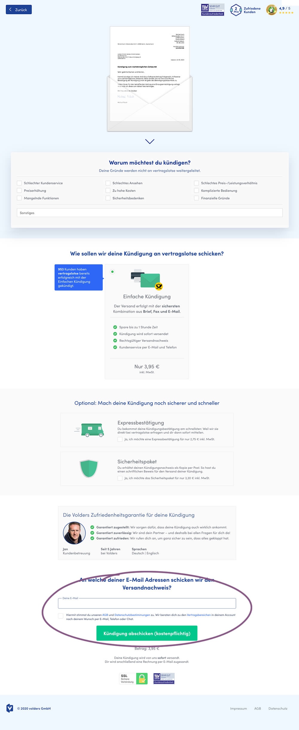 In this experiment, a password field was removed on a contract cancellation form (Volders).