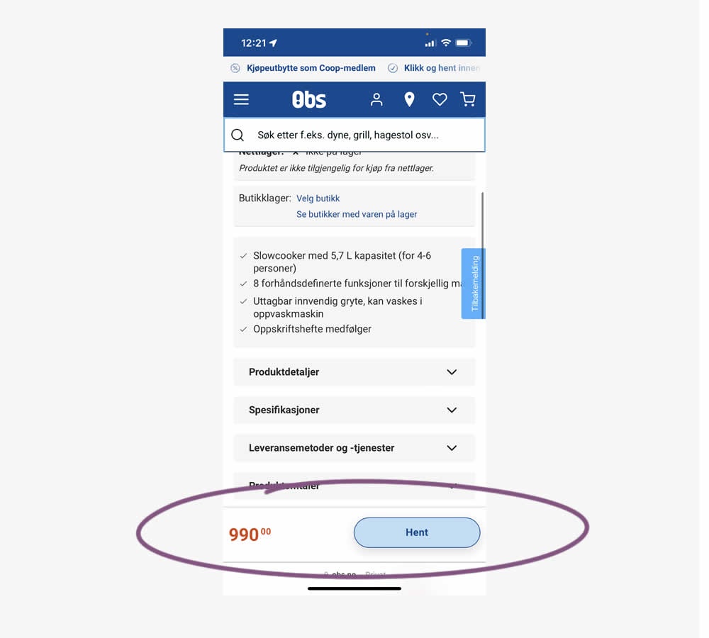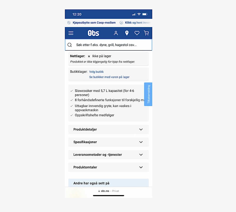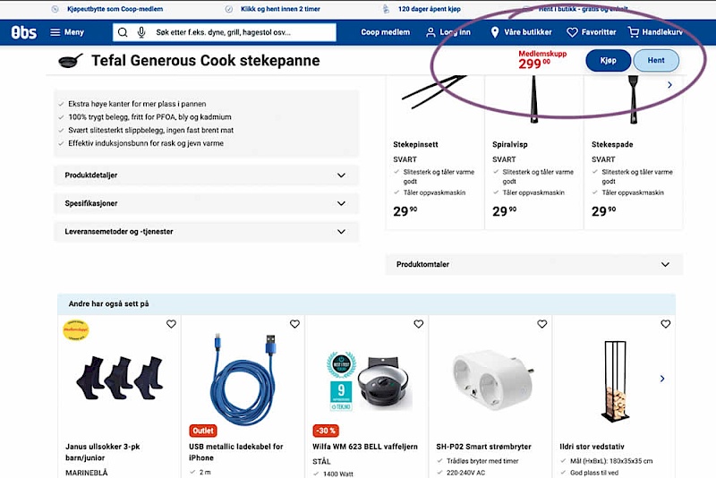 A sticky floating navigation bar was tested on product pages. The floating navigation contained: the product name, price and two add to cart buttons (add to cart; pickup in store). Impact on sales was measured. (Desktop Only)