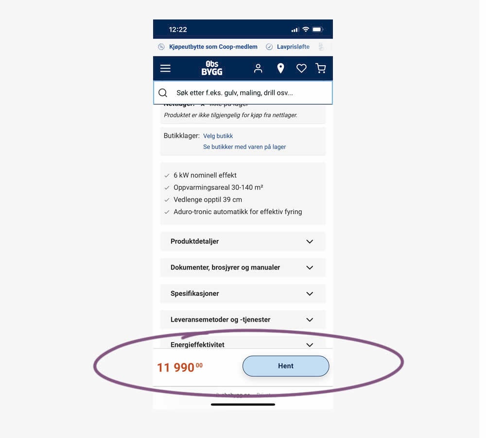 A sticky floating navigation bar was tested on product pages. The floating navigation contained: the product name, price and two add to cart buttons (add to cart; pickup in store). Impact on sales was measured. (Mobile only)