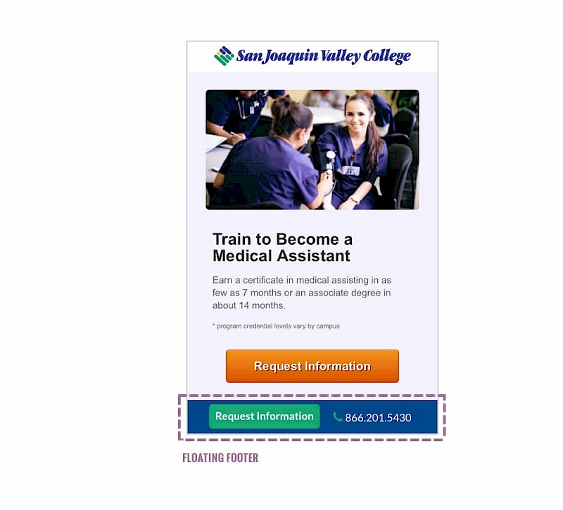 In this test, a footer with a button to a lead form was turned into a floating one.