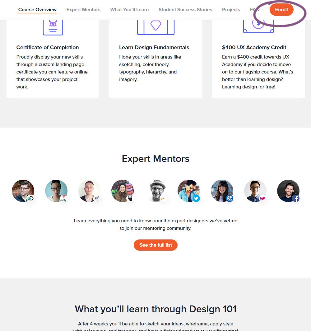 In this experiment, a sticky "Enroll" button was shown on a course landing page. The button lead to a payment funnel to allow enrolling/paying for a course. The exeperiment measured inital progression into this funnel as well as the deeper completed sales metric.