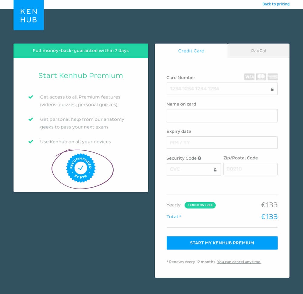 In this experiment, 4 accepted credit card icons were added to an add-to-cart and checkout flow. Impact on sales was measured.