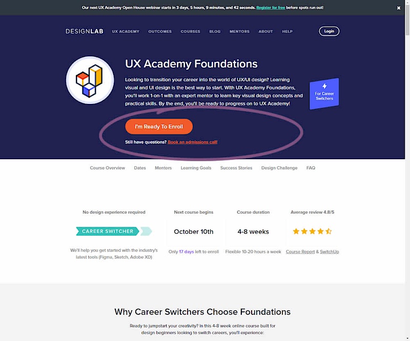 Later in the month when fewer spots were available, a more scarce message was used with the following copy "ONLY X SPOTS available in the next cohort".