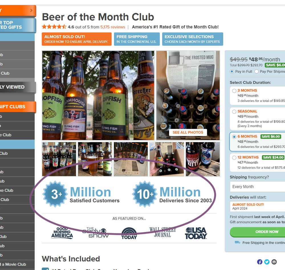In this experiment, social proof copy was added just below product photos. The copy emphasied that "3 million satisfied customers" and "10 million deliveries since 2003". Impact on sales was measured.