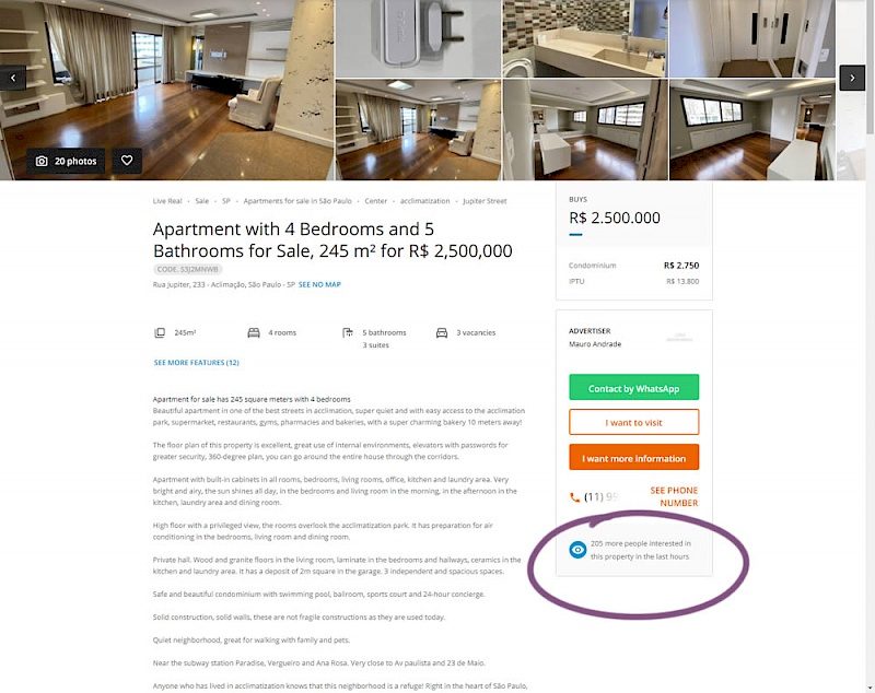 In this experiment, the number of recent property views was displayed under the call to action. Impact on overall lead generation was measured. (Translated using Google from Brazilian Portuguese.)