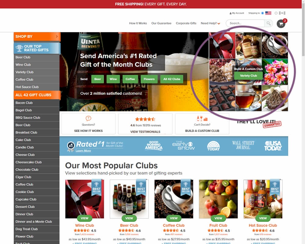 In this experiment, an extra product choice was added to the header of a homepage. Instead of only highlighting a set of four specific products, the option to build custom variety one, was added.