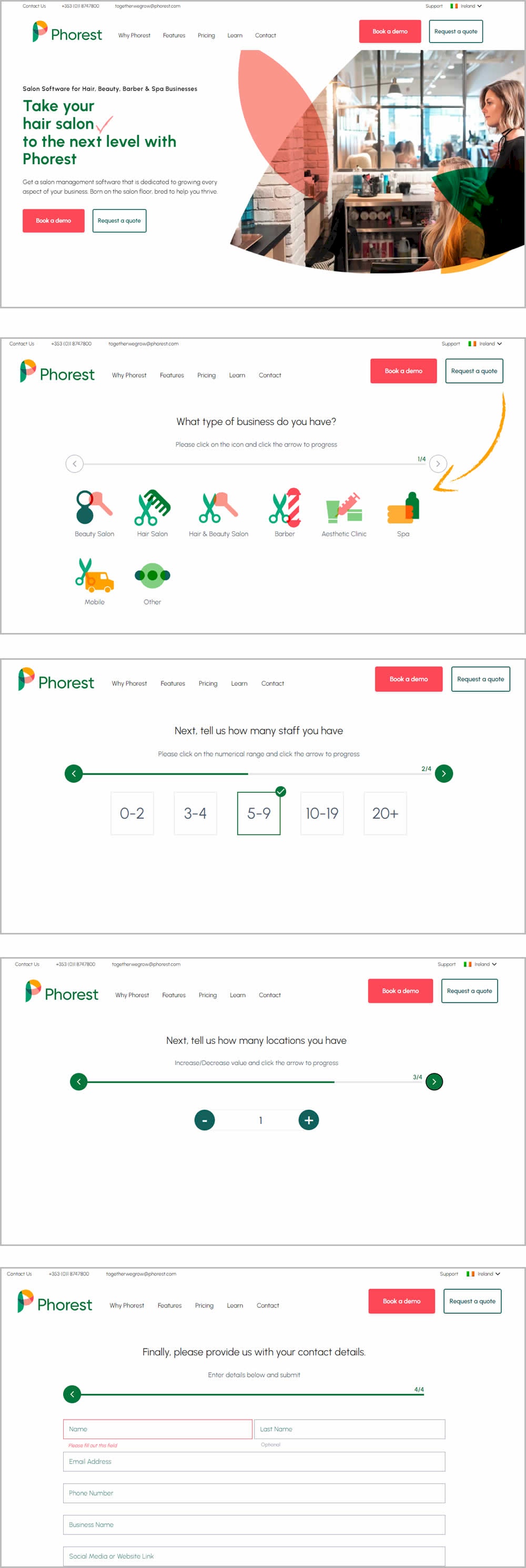 In this experiment, a single step popup modal was tested against a 4 step sign up funnel. Users entered the experiment on the homepage and the behavior of the two buttons, book a demo and get a quote, was adjusted. Impact on leads was measured.