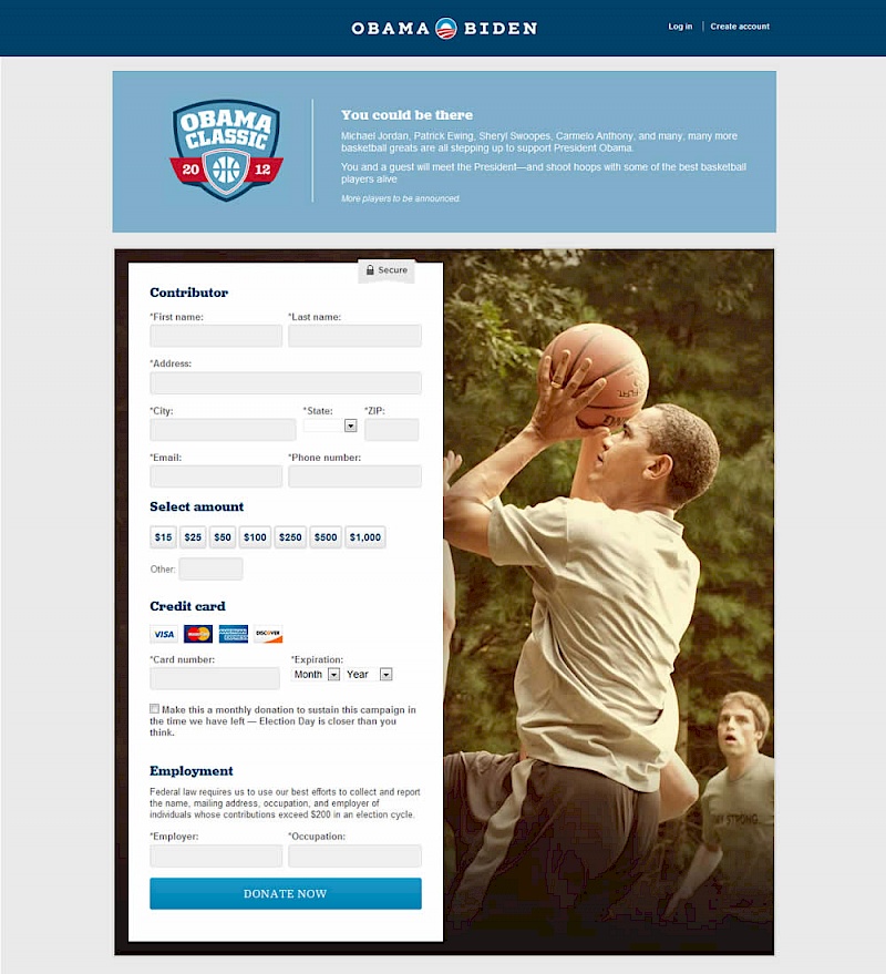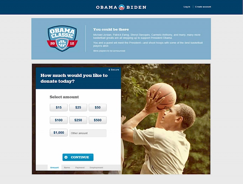 Kyle's team changed a donation form for the Barack Obama 2012 campaign from a single step to a 4 step one. The 4 steps were: amount, personal information, billing information and occupation/employer.