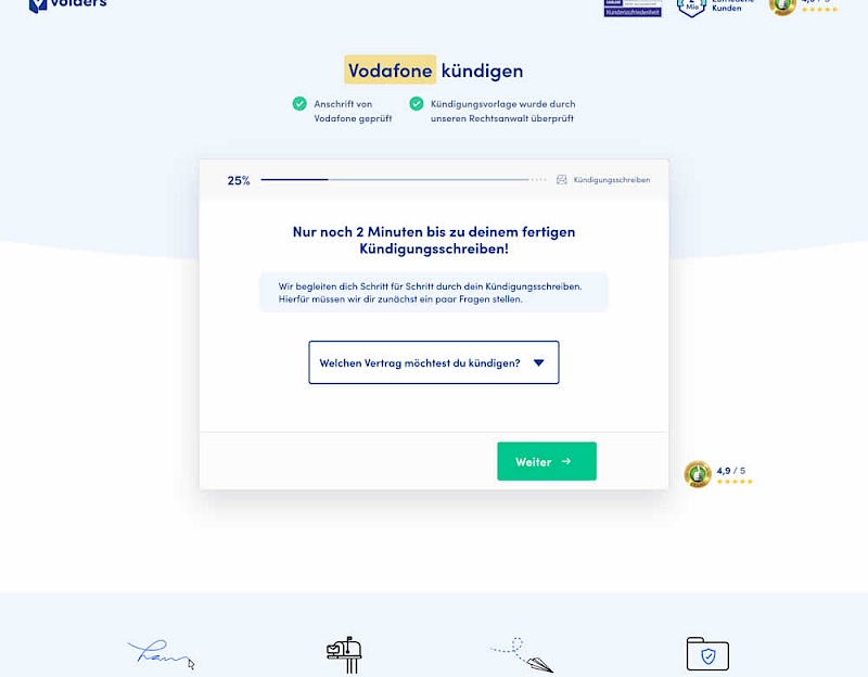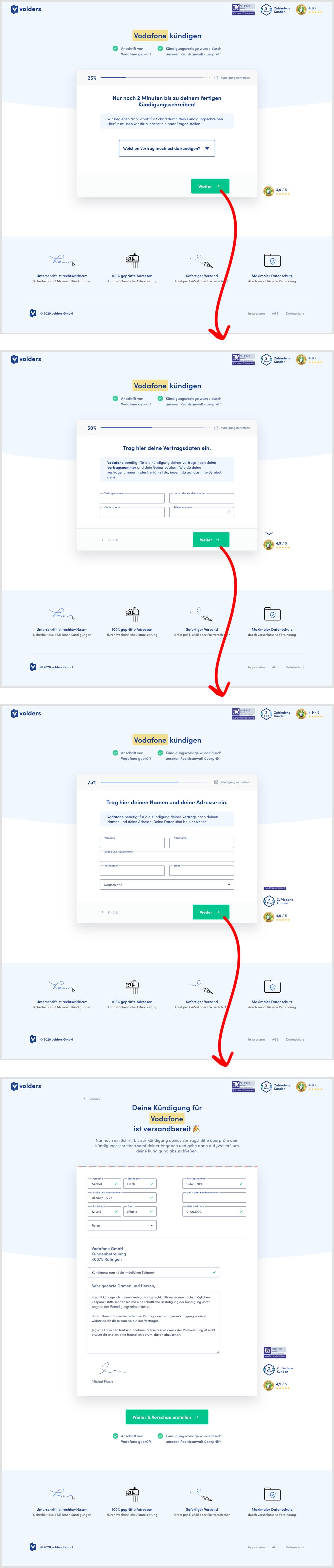 In this experiment, a long contract cancellation landing page (control) was broken down into 4 steps with 1 final summary step (variation).