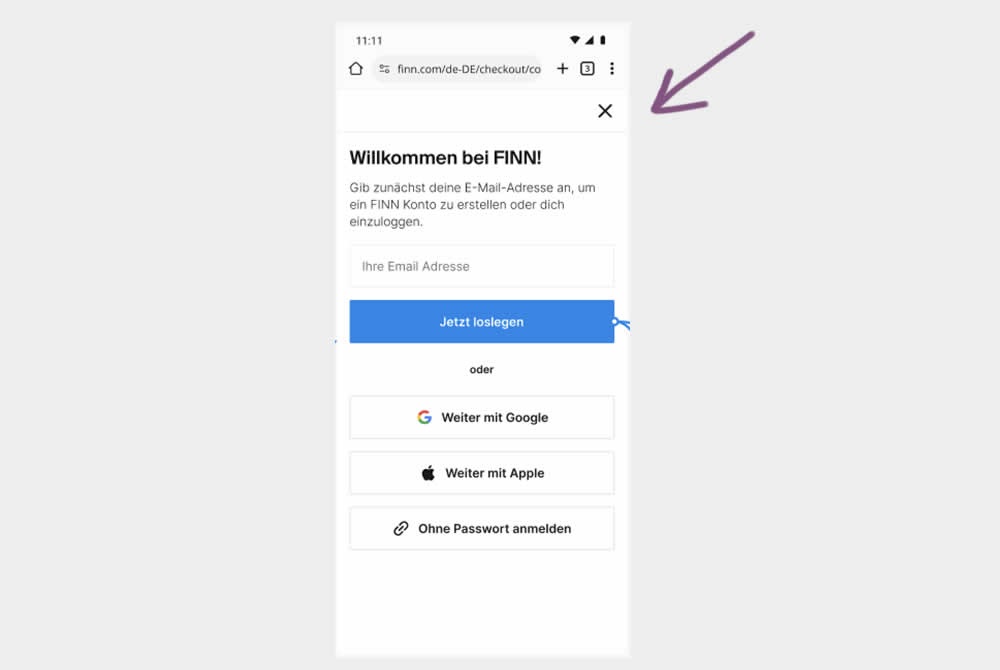 In this experiment, the control shows an (X) close option within a signup flow, whereas the variation had it removed. Clicking the close icon would collapse the signup modal and show the product page. Users were still able use the back and forward functionality.