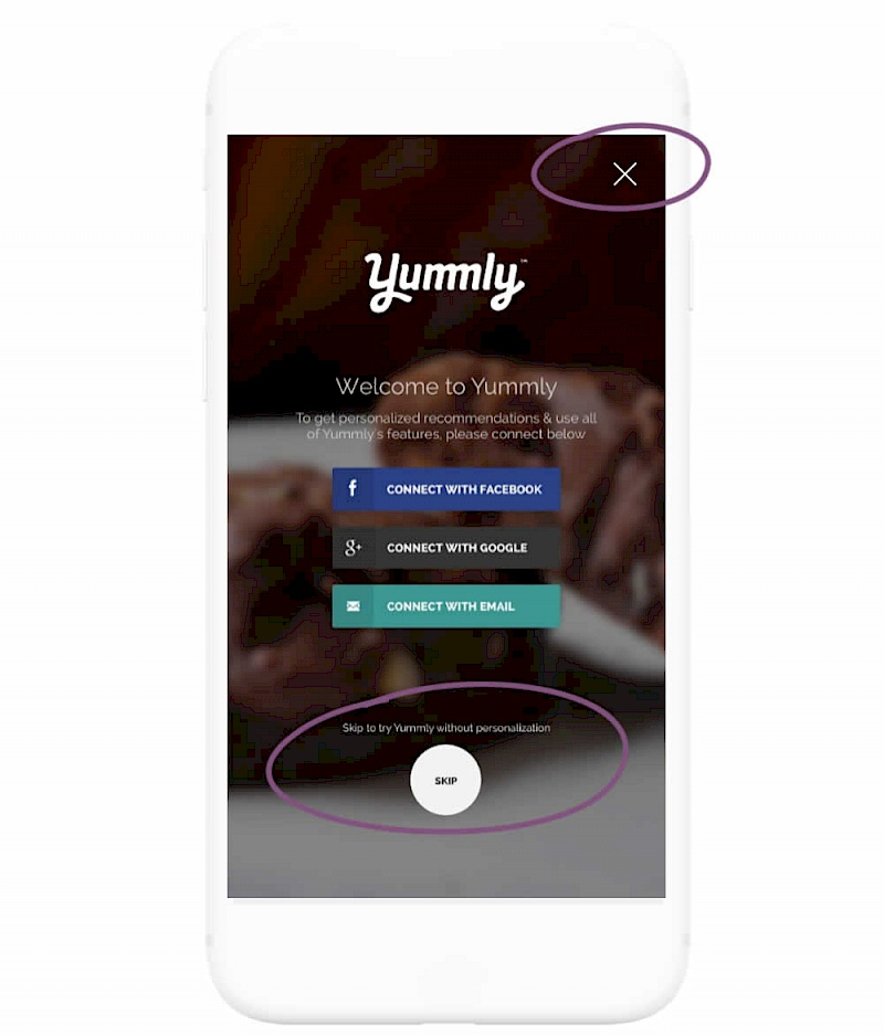 In this experiment, the highly prominent "skip" button was replaced with a less prominent text link. The copy of the skip text link also clarified the consequence of the action - losing out on personalization benefits. More so, the habitual top-right cancel icon was also removed.