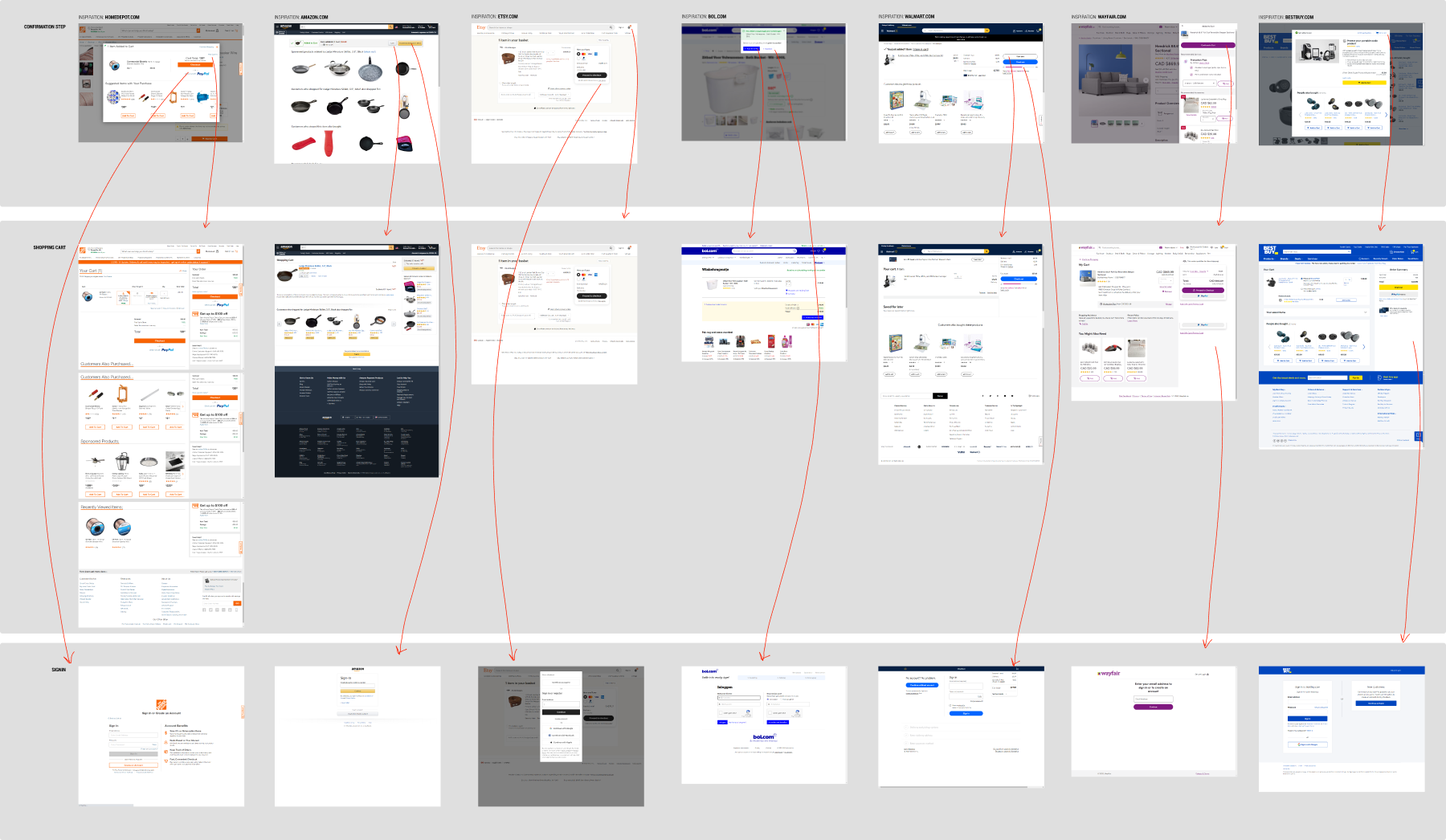 This template has been inspired by how 7 leading companies designed their shopport cart experience - starting for someone who is signed out and clicks on an "add to cart" button on a product page, until the signin screen. The companies that were analyzed here include: Home Depot, Amazon, Etsy, Bol, Walmart, Wayfair and Best Buy