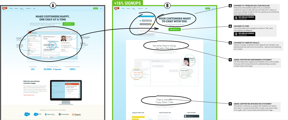 Olark's Better Home & Landing Screen Inspired By A +16% Signups A/B Test
