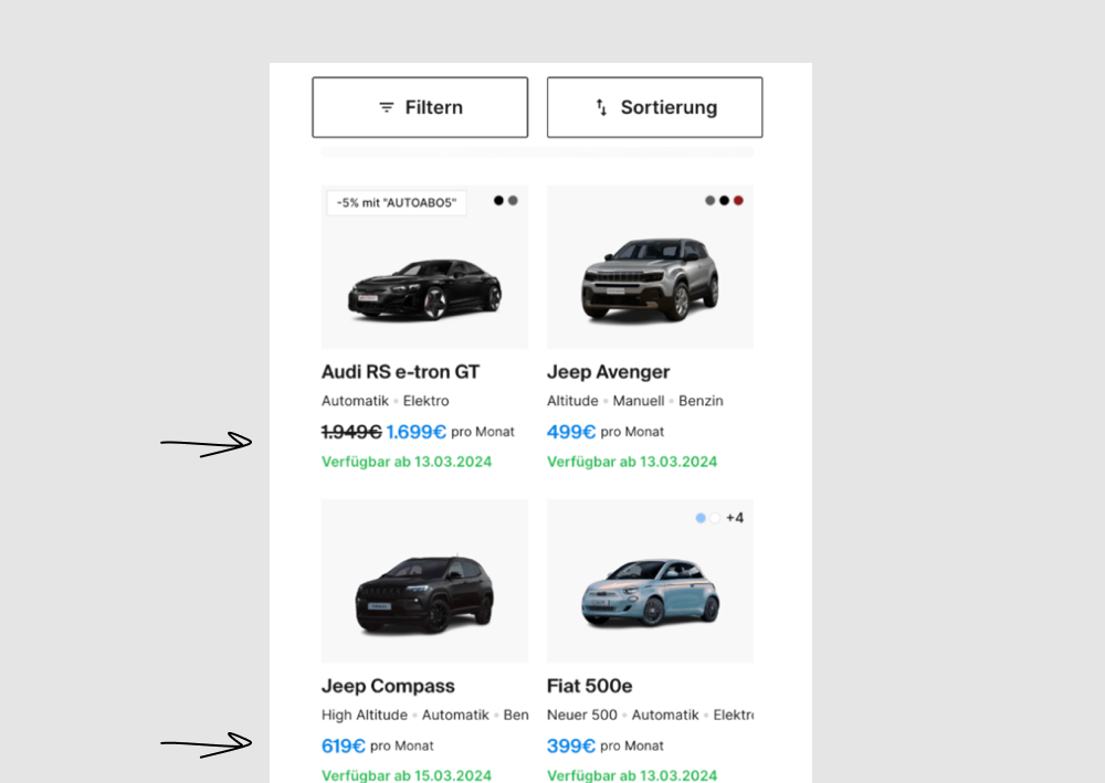 A number of copy tweaks were made in this experiment which was flipped around to match the earliest availability pattern (one of the more visible changes). Under this assumption, one of the more visible copy changes is the switch from using a blue "Most popular" tag towards a green "Available from [DATE]". The "available from" is also visible in the other version, except further down and with lower contrast. Impact on adds to cart and orders was measured.
